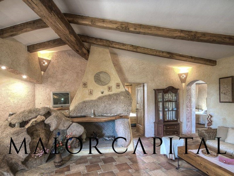 In perfetta armonia con lambiente circostante, la proprietà è stata costruita e rifinita con materiali di alta qualità locali come il granito, il ginepro e la cera sarda.
