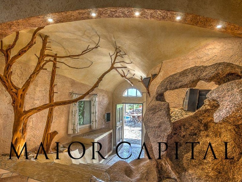In ogni ambiente è presente la roccia, vera protagonista di questo immobile. I giochi di luce creati grazie alle numerose aperture uniti allarredo e alla struttura particolare della villa rendono affascinante ogni spazio.