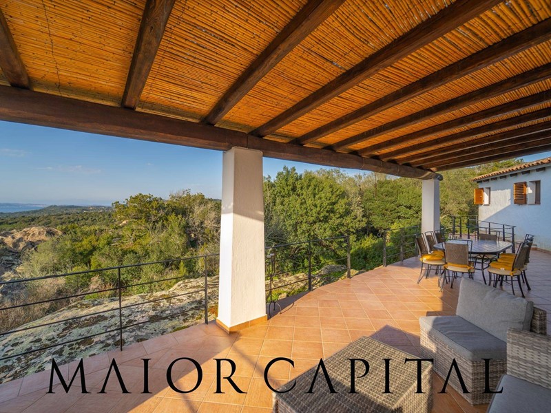 Dalla veranda coperta vivibile, caratterizzata da pace e privacy totale, si ammira un panorama meraviglioso con scorcio sullIsola di La Maddalena e qui lo sguardo viene rapito dai colori della natura.