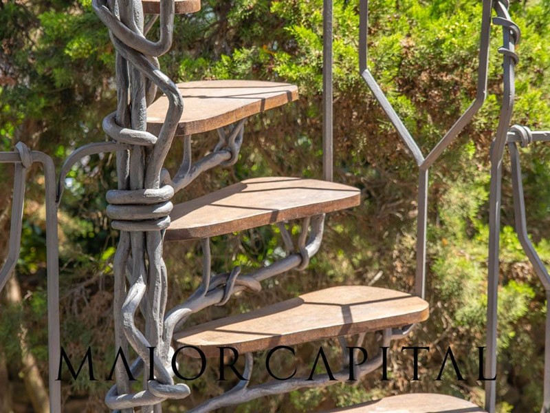 Il doppio accesso dallesterno permette di godere appieno del giardino privato e della piscina. Ogni spazio è stato distribuito sapientemente, garantendo privacy a tutti gli abitanti. La villa dispone anche di un'area per il personale di servizio, accessibile tramite una scala esterna, attrezzata con camere da letto e bagni.