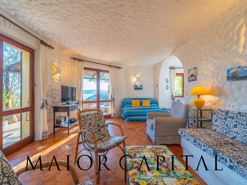 Gli interni riflettono il fascino senza tempo degli anni 70, con spazi ampi e accoglienti progettati per il relax e la convivialità. Il soggiorno, illuminato da grandi finestre che incorniciano il panorama, invita a vivere la bellezza del paesaggio anche nei momenti più quotidiani. La zona giorno, situata al piano terra, si distingue per il perfetto equilibrio tra eleganza e praticità, con la luce naturale che scalda ogni angolo.