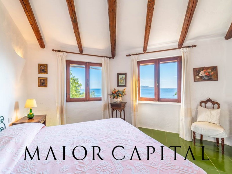 La zona notte si trova al primo piano, accessibile tramite una scala interna che parte dal salotto. La camera padronale, spaziosa e accogliente, offre viste mozzafiato sul mare da ogni finestra, rendendo ogni risveglio unesperienza indimenticabile. Completano il piano una cameretta doppia, perfetta per i più piccoli o per gli ospiti, e due bagni con doccia, ben curati e funzionali. Una seconda veranda al piano superiore regala un altro spazio privilegiato per ammirare il mare, incorniciando un panorama che sembra uscito da un dipinto.