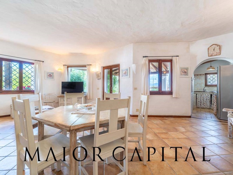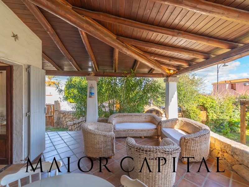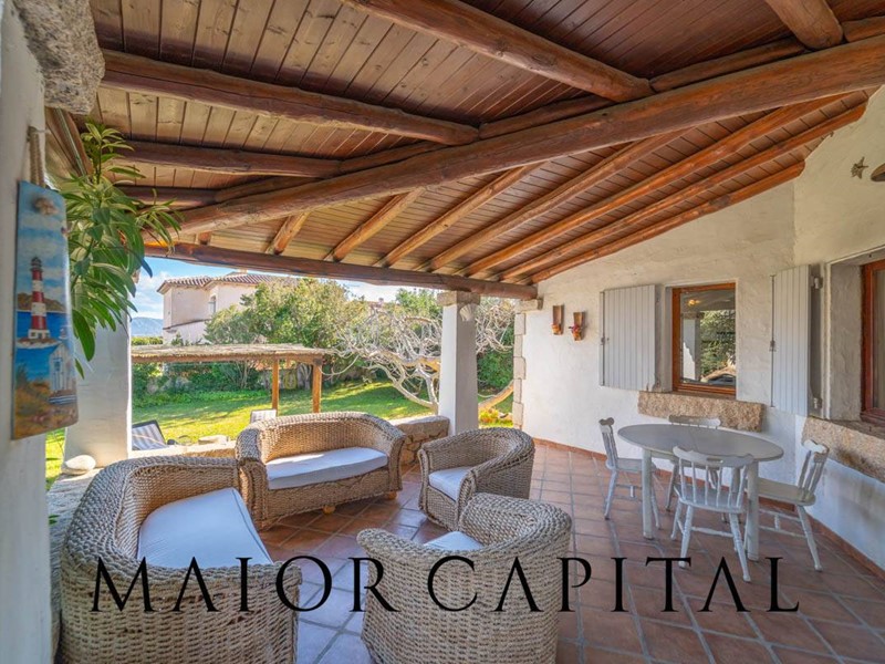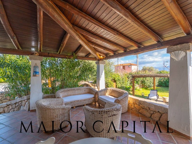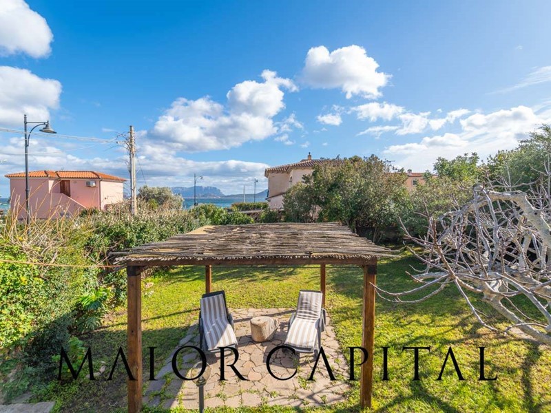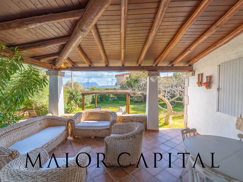 Il giardino, che circonda la villa su quattro lati, è uno spazio esclusivo con una comoda area barbecue in muratura e unampia zona ideale per la realizzazione di una piscina. Una raffinata veranda coperta, arredata con gusto, accoglie gli ospiti e regala una meravigliosa vista sul mare, con limponente Isola di Tavolara a fare da sfondo, visibile anche dal luminoso salone interno.