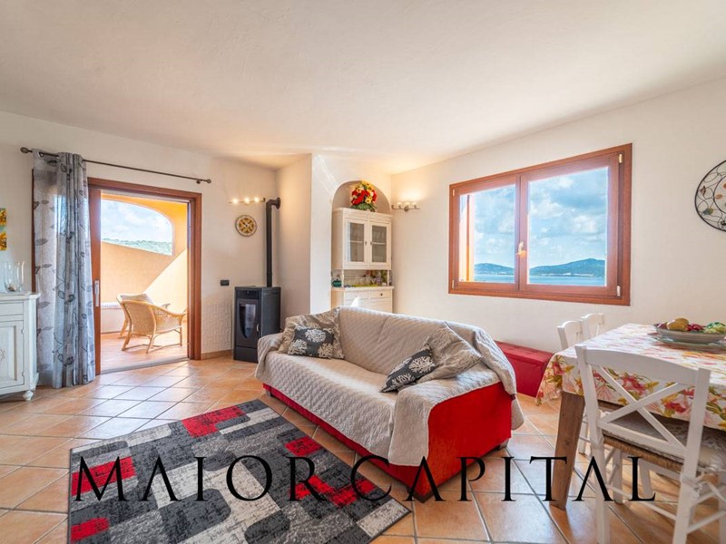 Lingresso si apre su un luminoso soggiorno, caratterizzato da unatmosfera accogliente e da unincantevole vista sul mare della Sardegna. La zona giorno, spaziosa e ben distribuita, include una cucina funzionale leggermente separata, ideale per garantire praticità e comfort.