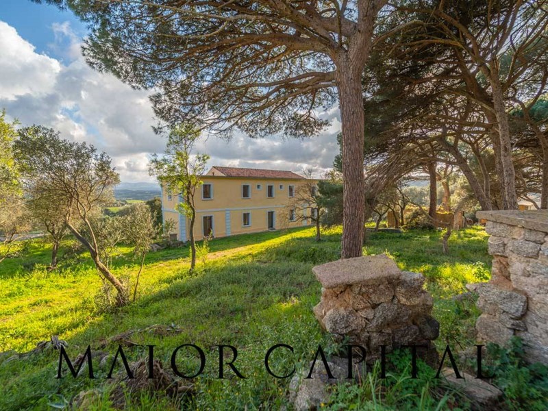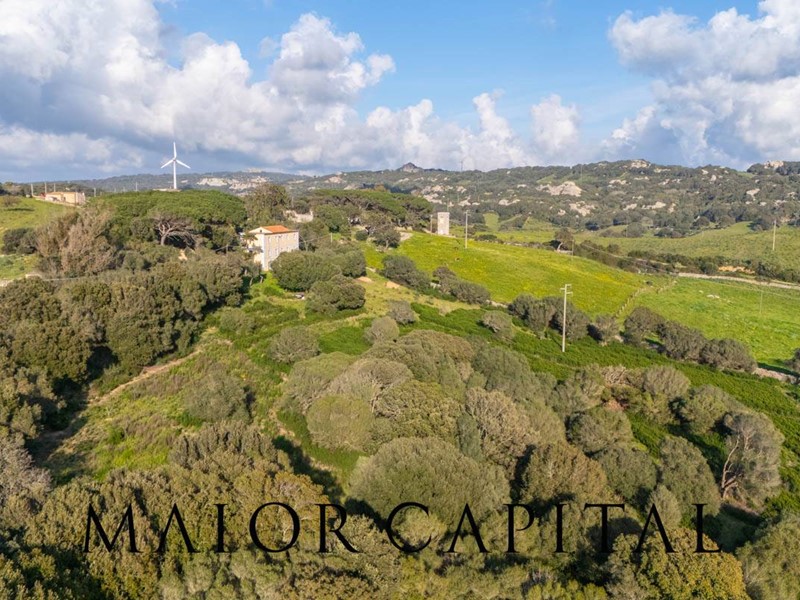 Attorno alla dimora si estendono quattro ettari di terreno ricchi di uliveti e un fitto bosco di sugherete, che avvolgono la proprietà in unatmosfera di quiete e riservatezza. Allinterno della proprietà si trovano anche antichi stazzi e magazzini in pietra, testimonianze della tradizione gallurese, che possono essere recuperati e trasformati in spazi abitativi, ambienti ricettivi o luoghi dedicati ad esperienze enogastronomiche e culturali.