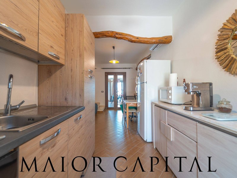 La villetta, distribuita su due livelli, si presenta in ottimo stato di manutenzione e curata nei minimi dettagli, con finiture di pregio come le eleganti scale in marmo di Orosei e la facciata in pietra a vista, che richiamano i materiali e le tradizioni del territorio.