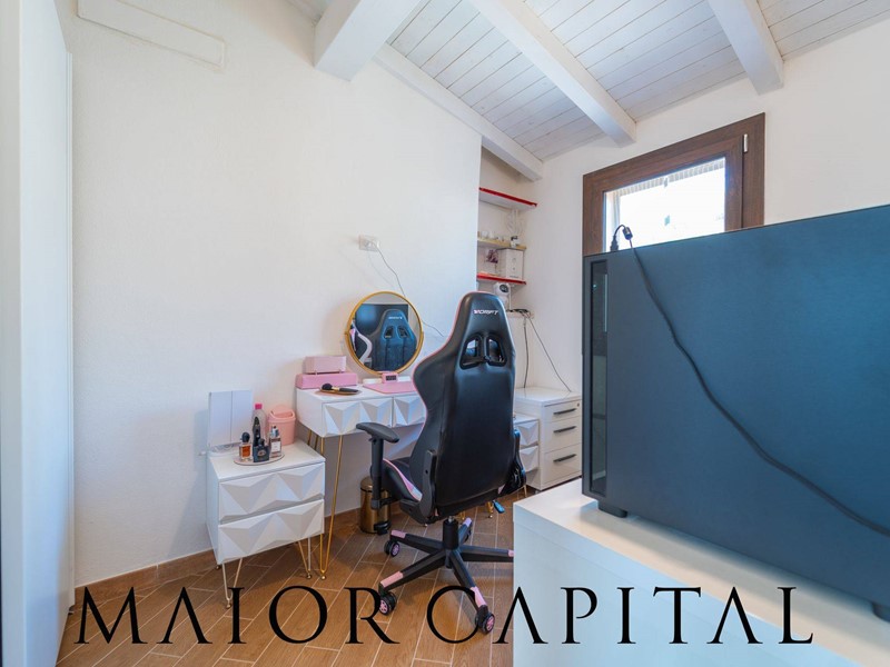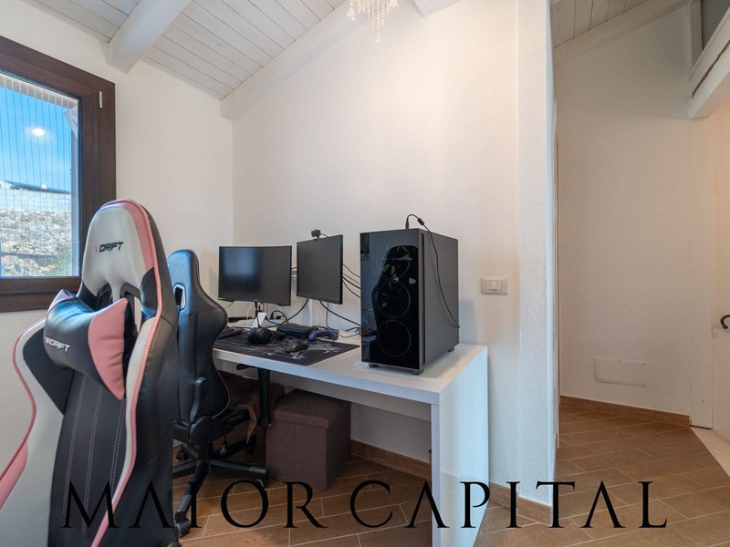 Al piano superiore si trova la camera padronale con accesso diretto allampia terrazza panoramica vista mare, ideale per ammirare il paesaggio in ogni momento della giornata. Sullo stesso livello si trovano anche uno stanzino, perfetto come studio, sala lettura o cabina armadio, e un secondo bagno.