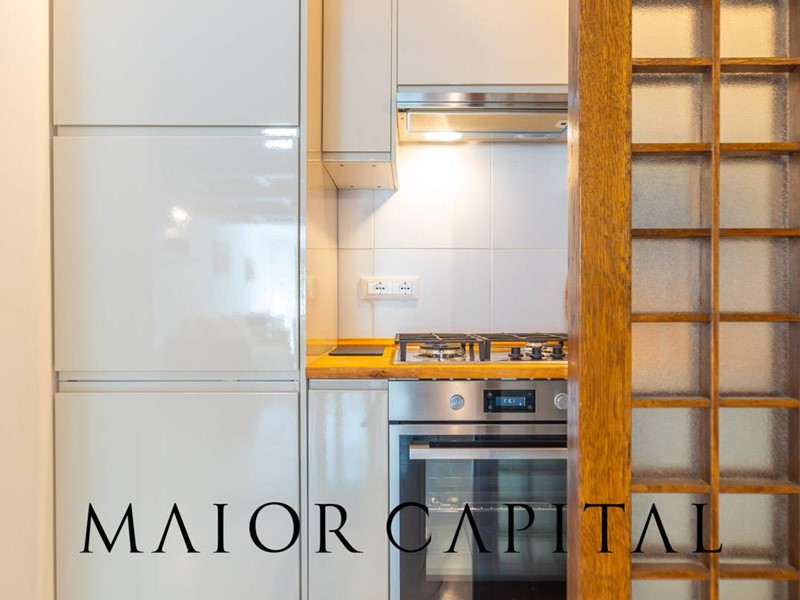 L'appartamento si sviluppa su due livelli e offre ampi e luminosi spazi, con una disposizione funzionale che garantisce il massimo del comfort. Il piano principale ospita un luminoso living, arricchito da un balconcino a sfogo esterno che guarda sul verde. La cucina, completamente attrezzata e a scomparsa, è progettata per ottimizzare gli spazi e garantire praticità. Al piano rialzato si trovano due eleganti camere da letto, entrambe molto spaziose, e un bagno moderno.