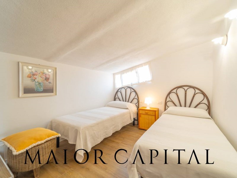 Salendo al piano superiore, si accede a un accogliente salotto, che si affaccia su una veranda con vista mare sull'insenatura di Porto Rotondo, perfetta per momenti di convivialità e relax. La terza camera da letto, sempre al piano superiore, è dotata di un bagno en suite, garantendo la massima privacy e comfort.