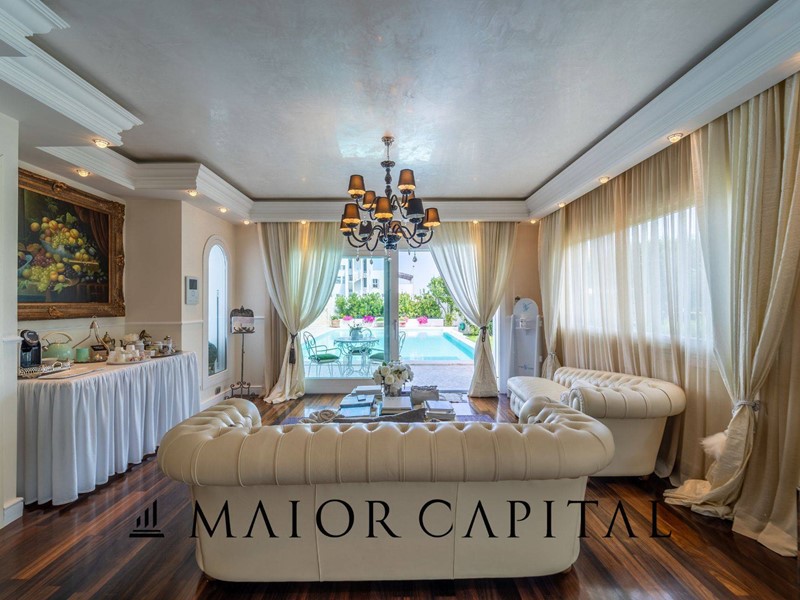Allinterno della proprietà si rimane subito colpiti dalle finiture e materiali di pregio e dallarredo di pregio: luce, eleganza e charme sono le caratteristiche principali che descrivono perfettamente la villa.