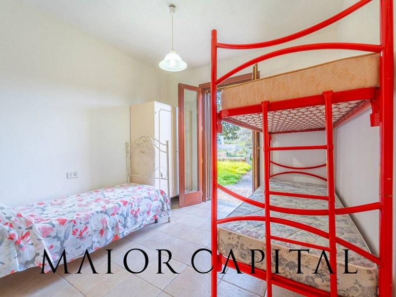 Lingresso principale, attraverso un elegante viale piastrellato, conduce a una spaziosa veranda con vista mare, ideale per rilassarsi e godere del panorama. Da qui si accede alla zona living, ariosa e accogliente. Il secondo ingresso, situato sul lato opposto della proprietà, si apre su un ampio giardino privato e permette laccesso diretto alla cameretta tramite una porta finestra.