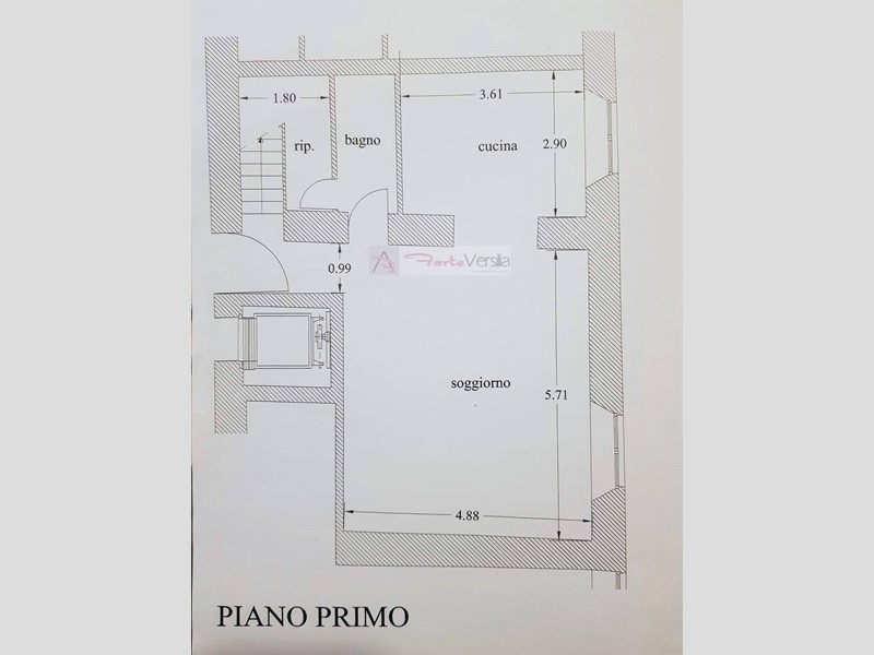 Piano Primo: Soggiorno, Cucina abitabile, Bagno, ripostiglio