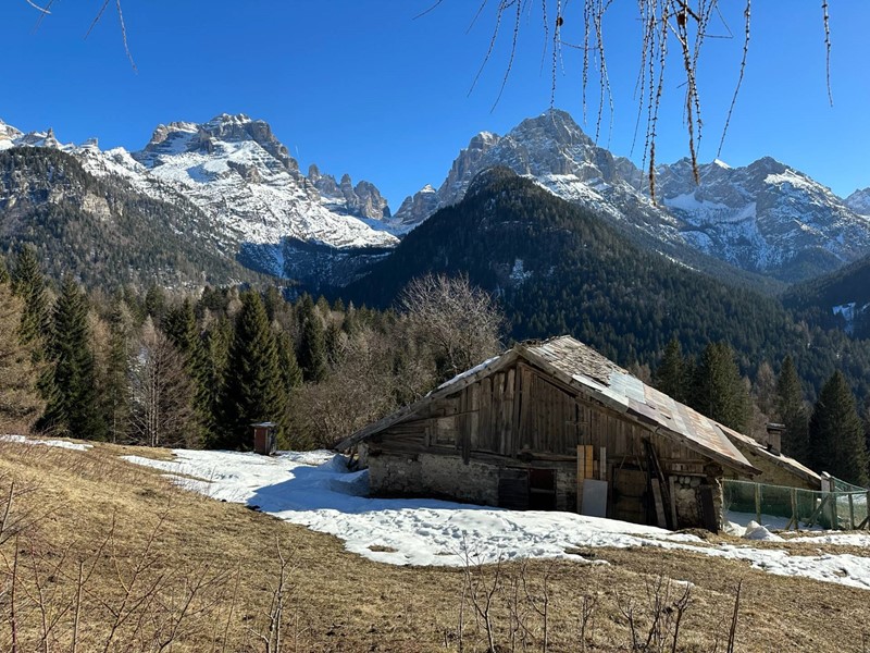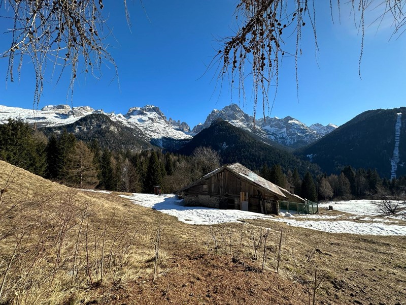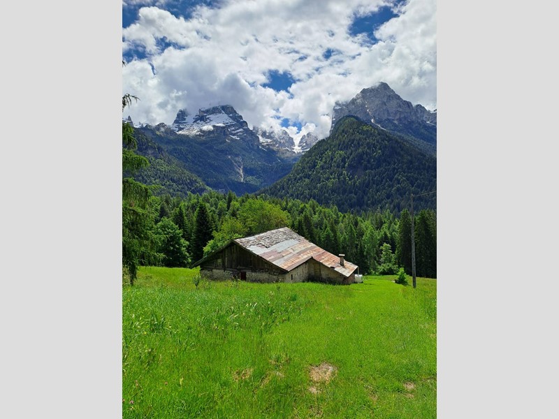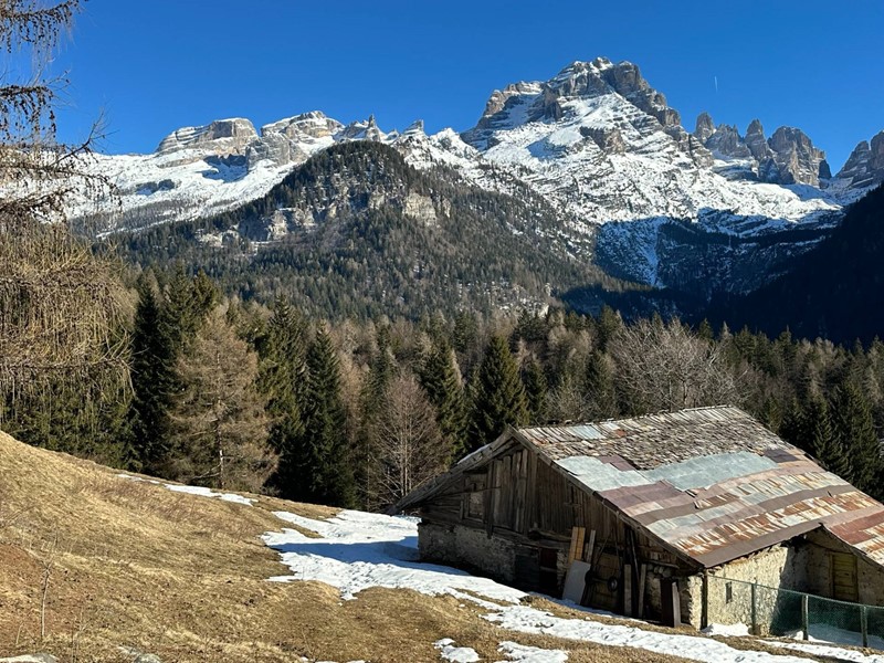 La parte di edificio in vendita e le ampie aree esterne prative per una superficie di mq 5.635, sono localizzate in una particolare località montana che coniuga la vicinanza alla località turistica di Madonna di Campiglio e ad un unico ed irripetibile affaccio sulle cime delle Dolomiti di Brenta.