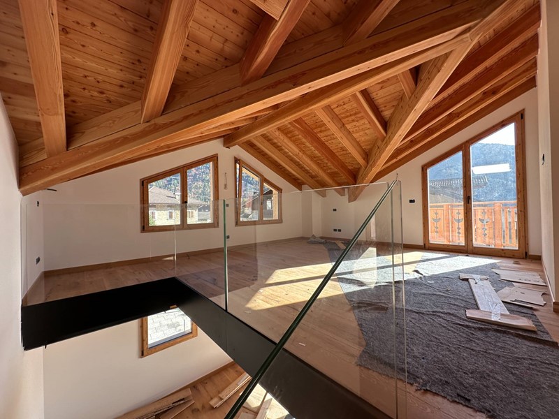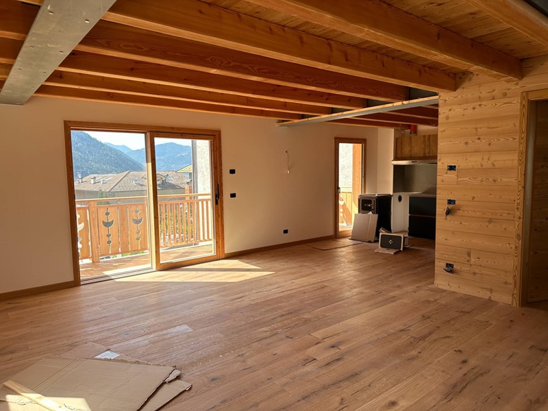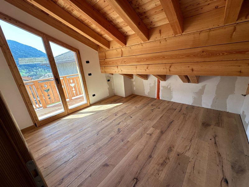 Nel comune di Spiazzo Rendena in località Mortaso, stupendo appartamento su due livelli, primo e secondo piano mansardato, in posizione soleggiata e panoramica.