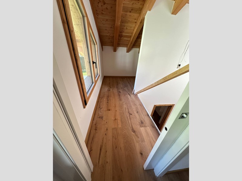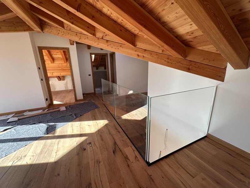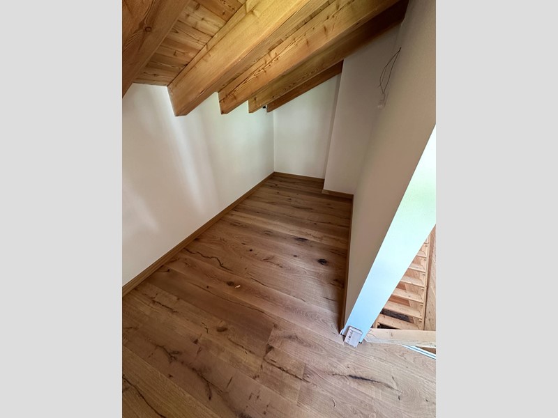 L'appartamento di circa mq 185 con ingresso indipendente da scala esterna è così composto: al primo piano, ingresso, ampia zona soggiorno con angolo cucina, già arredata con mobile in rovere, e uscita sul balcone esposto ad sud, ripostiglio, bagno finestrato per zona giorno, disimpegno zona notte, stanza da letto matrimoniale con bagno finestrato e doccia, scala che va al piano mansarda dove si trovano due stanze da letto, un bagno con velux e doccia, ampia zona open space per studio/giochi.