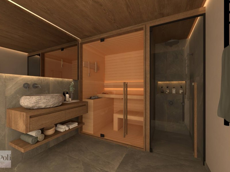 Lappartamento esposto a est-sud-ovest di 145 mq comm. è così composto: ingresso, ampia zona giorno open space divisa tra spazio cucina-soggiorno e spazio relax con accessi ai balconi esposti a sud e ad ovest, un bagno di servizio, un ripostiglio, disimpegno per la zona notte dove si trovano due ampie stanze da letto matrimoniali con proprio bagno-zona benessere e cabina armadio, una con accesso al proprio balcone esposto a sud.