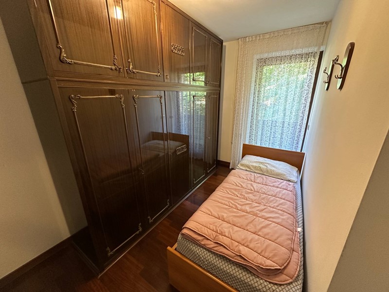 A Pinzolo, al primo piano, ampio quadrilocale arredato, in ottima posizione vicino al Parco Pineta, alla ciclabile e al Centro Sportivo.