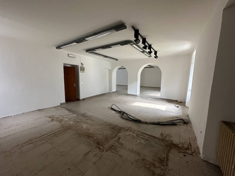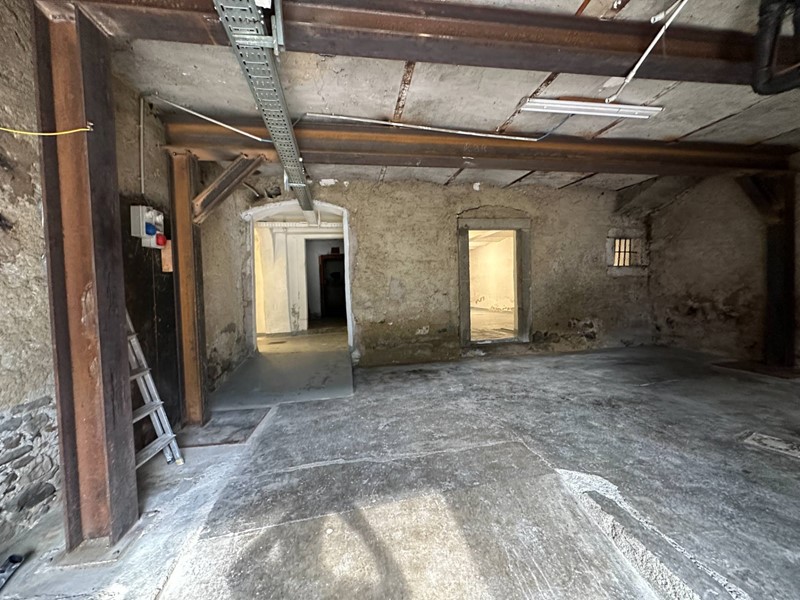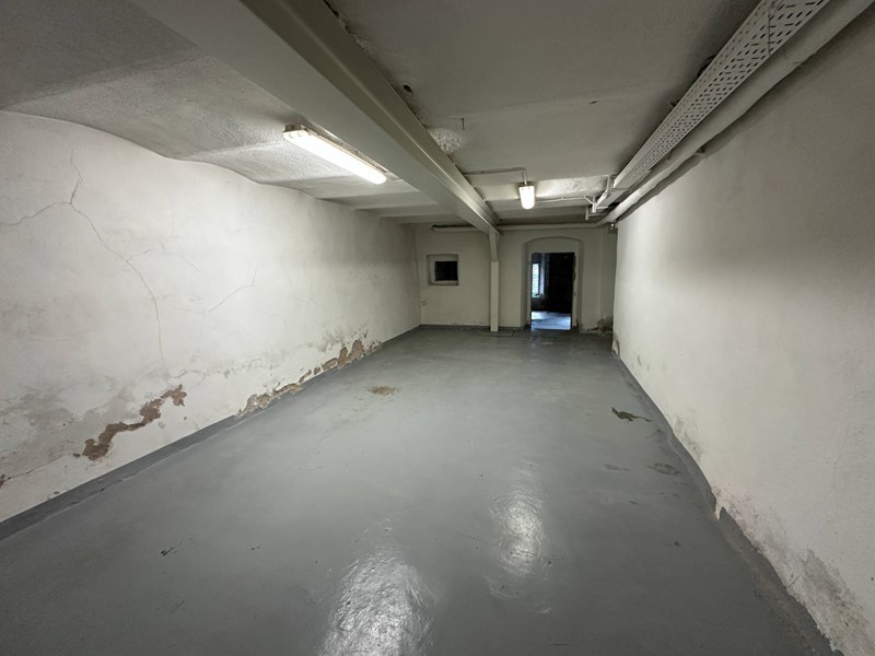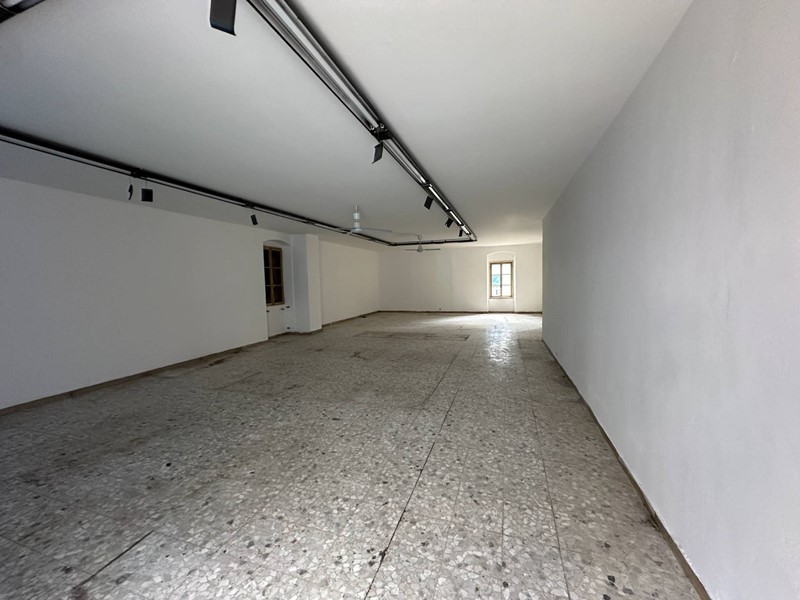 Al piano rialzato si trova il negozio di circa 160 mq con accesso direttamente dalla piazza, al piano terra/seminterrato ampi locali ad uso magazzino per circa 140 mq con accesso diretto al piano sul lato ovest.