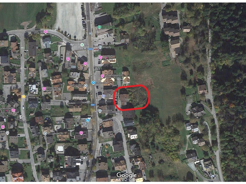 La superficie totale del lotto è di 2.005 mq la quasi totalità dellarea è nel P.R.G. del Comune di Pinzolo in D1.1 Zone per attrezzature ricettive e alberghiere esistente e di completamento regolata dallarticolo 17 delle Norme di Attuazione.