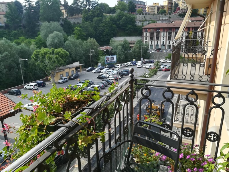 appartamento pari al nuovo in piano quarto servito da ascensore composto da ampio soggiorno, cucina abitabile , balcone panoramico sul Corso e sulle montagne Monregalesi, bagno, zona notte: camera letto matrimoniale con bagno, balcone vista collina Piazza.