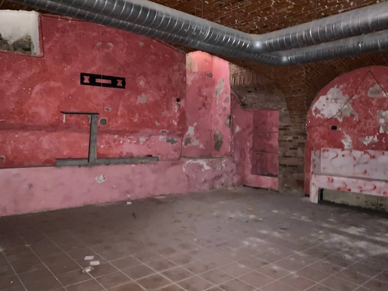 Piano interrato: accessibile da comoda scala interna composto da un disimpegno, un primo ampio locale per la somministrazione di bevande di circa mq. 50, ed un secondo locale, anch'esso per la somministrazione di bevande di circa 22 mq. Entrambi i locali si presentano in perfette condizioni con volte a botte in mattoni.