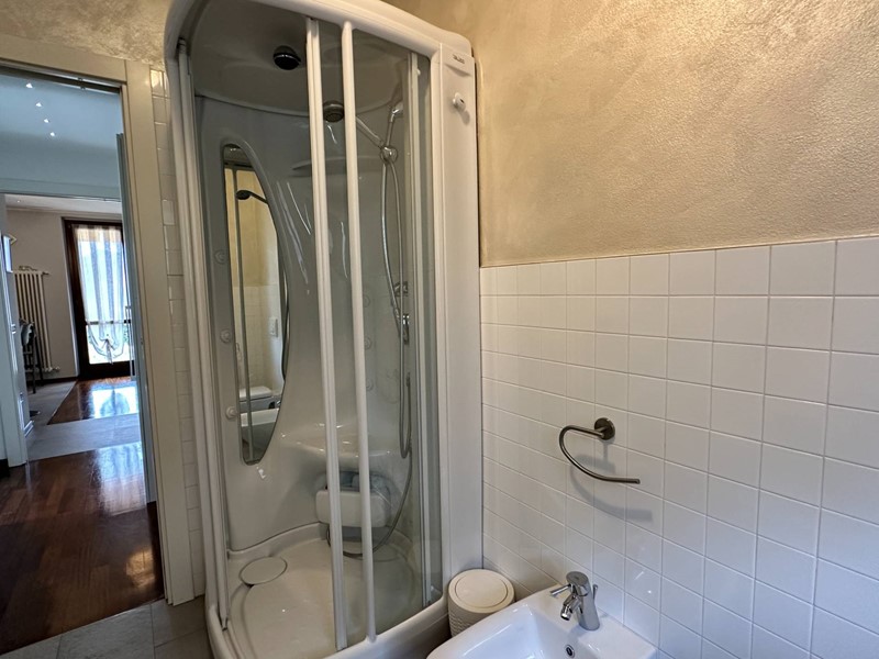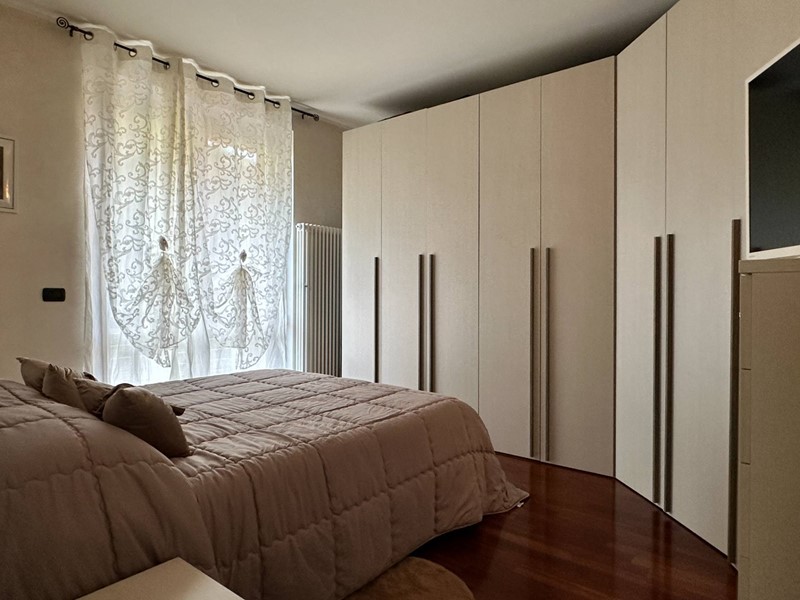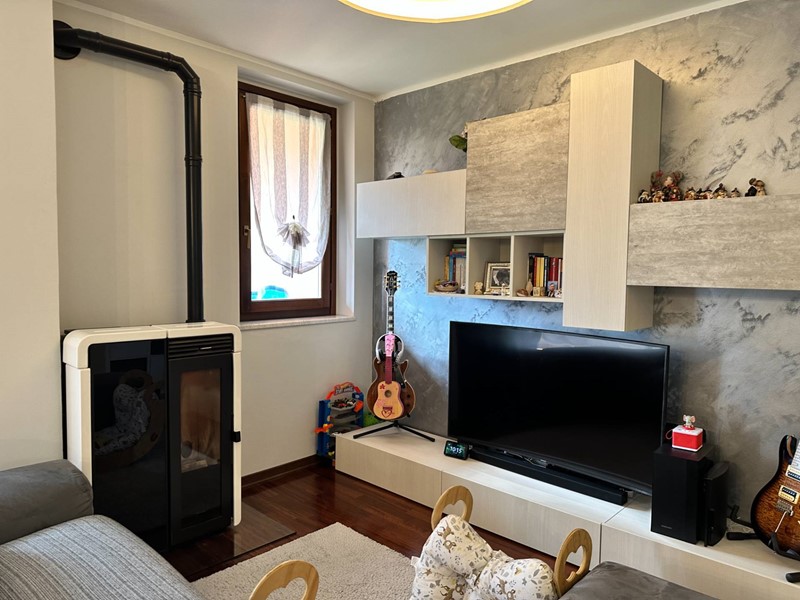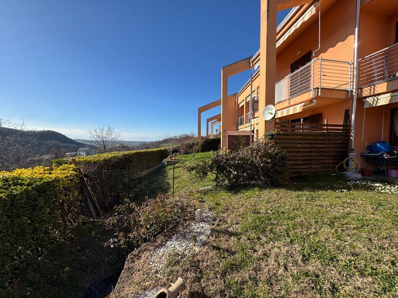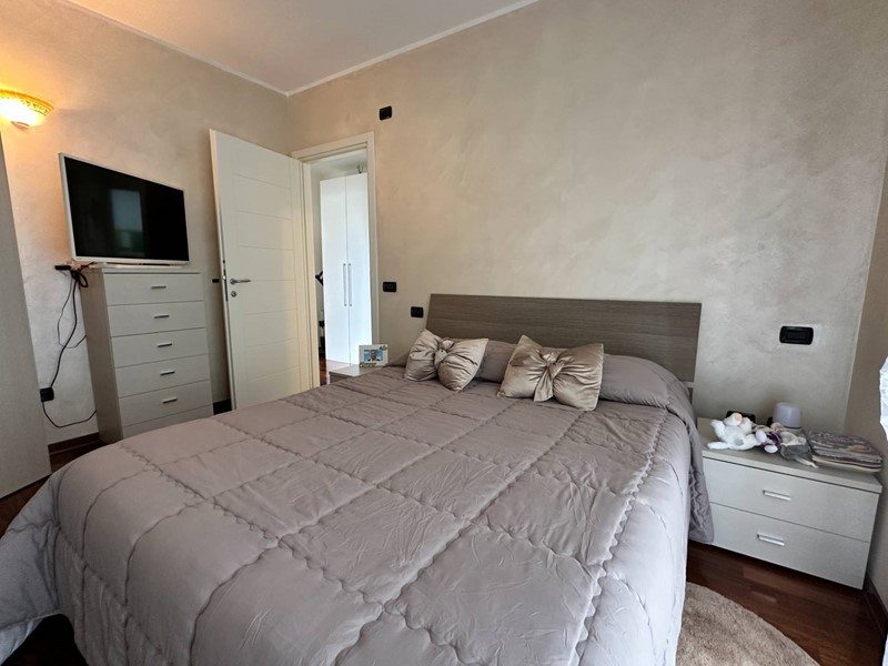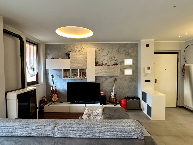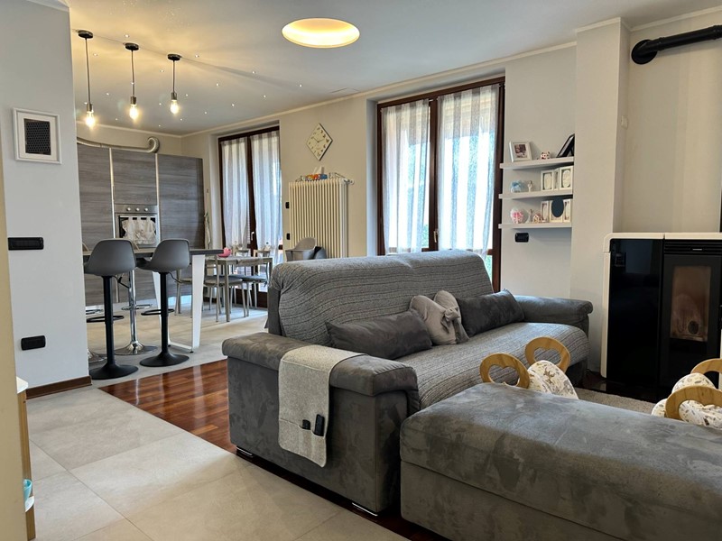Gli spazi interni arricchiti da finiture di pregio risultano composti da zona giorno con ingresso in ampio soggiorno con cucina a vista e accesso diretto al giardino esterno dal quale è possibile ammirare uno splendido panorama verso l'arco alpino. Zona notte con due camere da letto, due bagni e balcone.