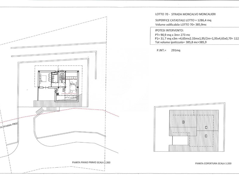 Moncalieri, in zona collinare, terreno di circa 1.290 mq, di cui densità fondiaria 0,3 mc, quindi volume edificabile 385,9 mc.