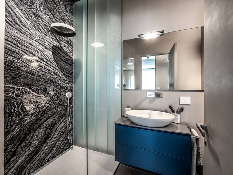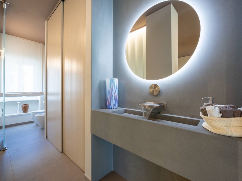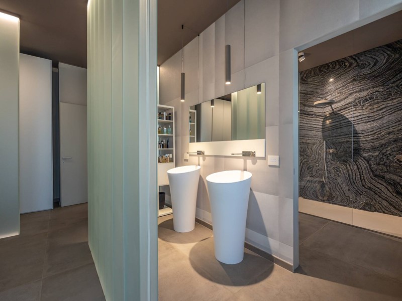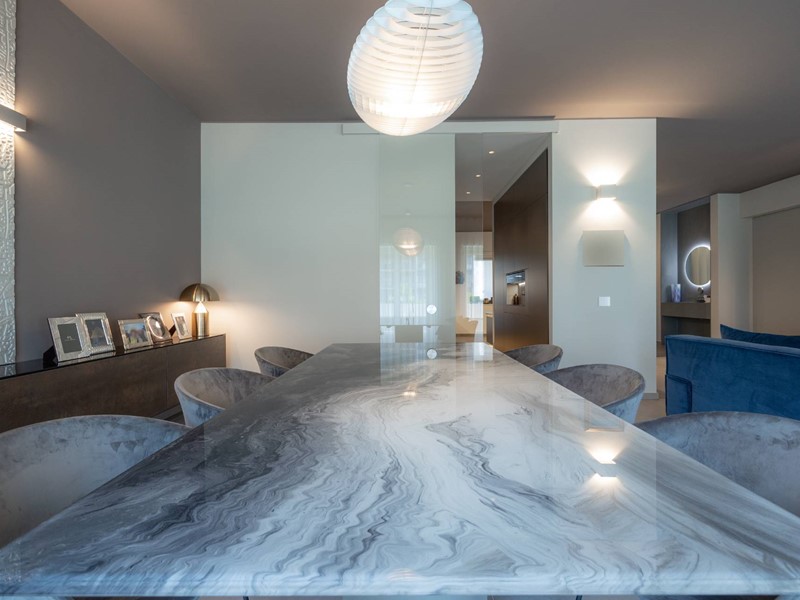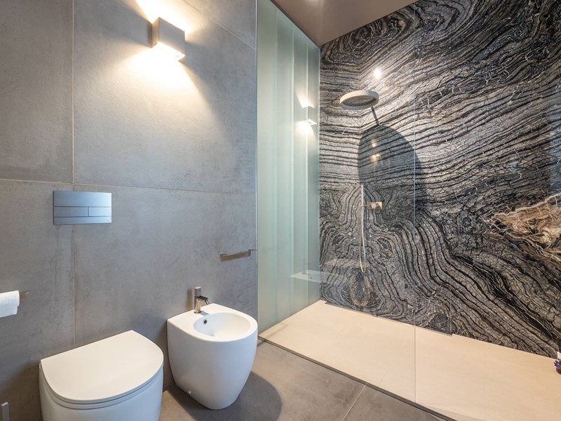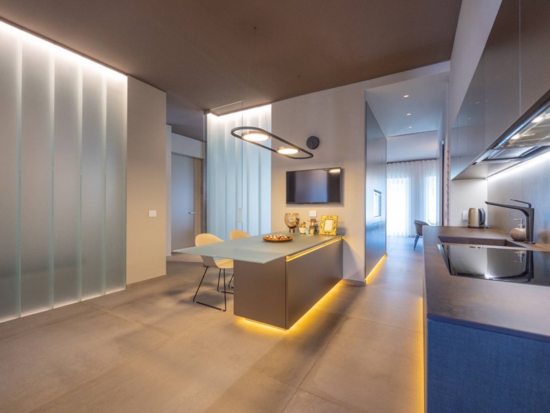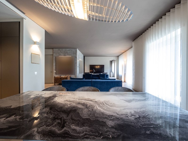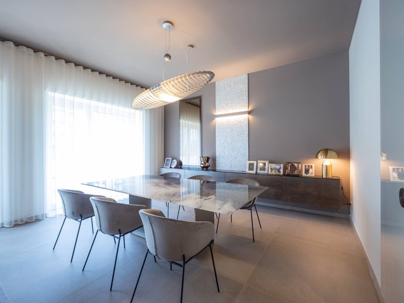 I rivestimenti sono di altissima qualità quali marmo brasiliano a lastre, pareti a scomparsa per dividere gli ambienti, porte vetro a tutt'altezza per rendere ancora più luminoso l'ambiente, riscaldamento a soffitto per riscaldare gli spazi in modo uniforme.