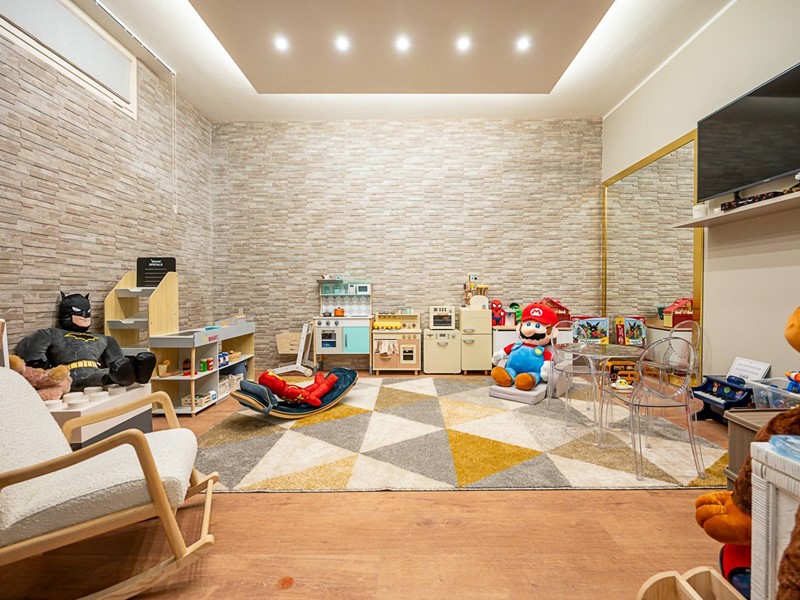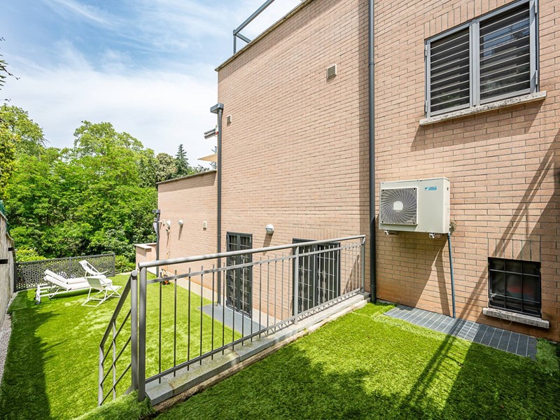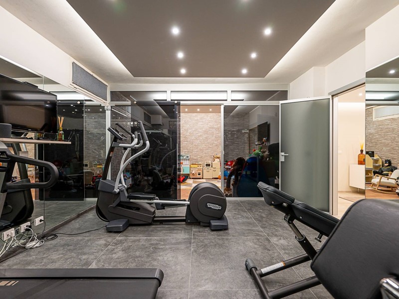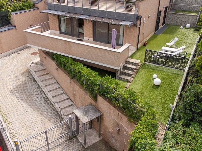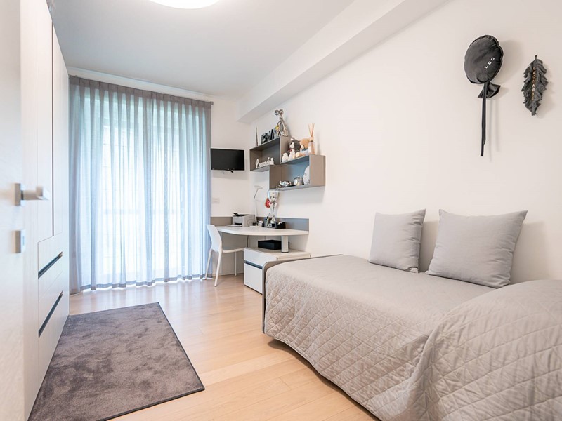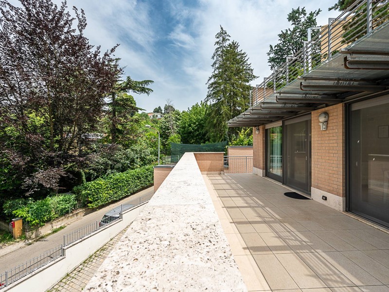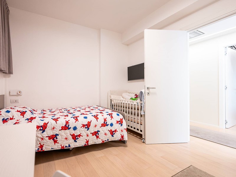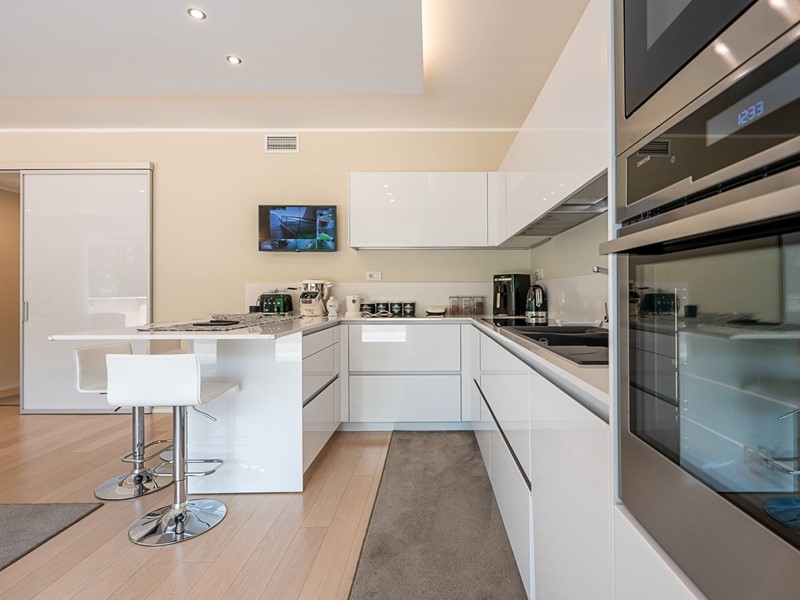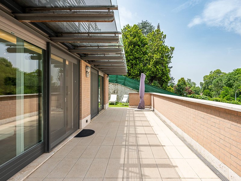 L'appartamento è composto da ingresso, ampio soggiorno con sala da pranzo e cucina a vista, tre camere di cui una con cabina armadio, due bagni e ripostiglio; al piano seminterrato, collegato tramite ascensore, un'ampia autorimessa per tre auto e una cantina attualmente utilizzata come palestra.