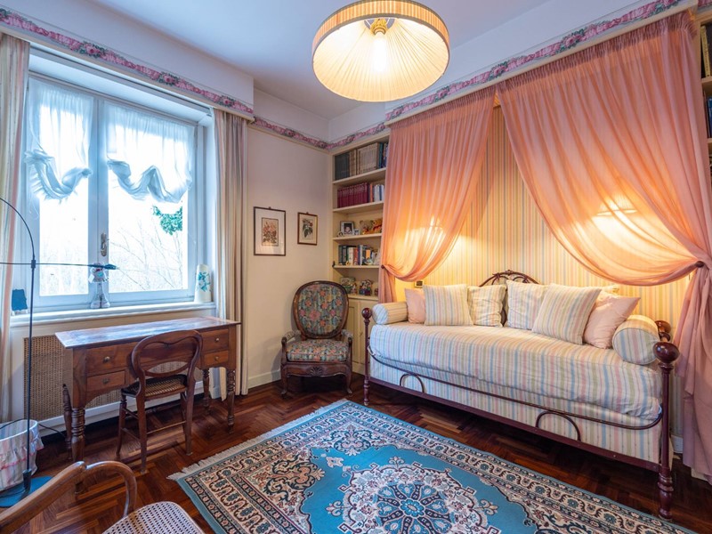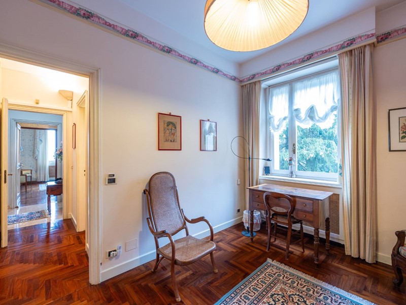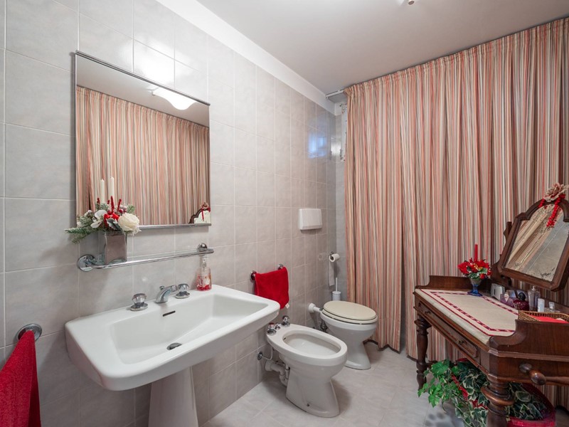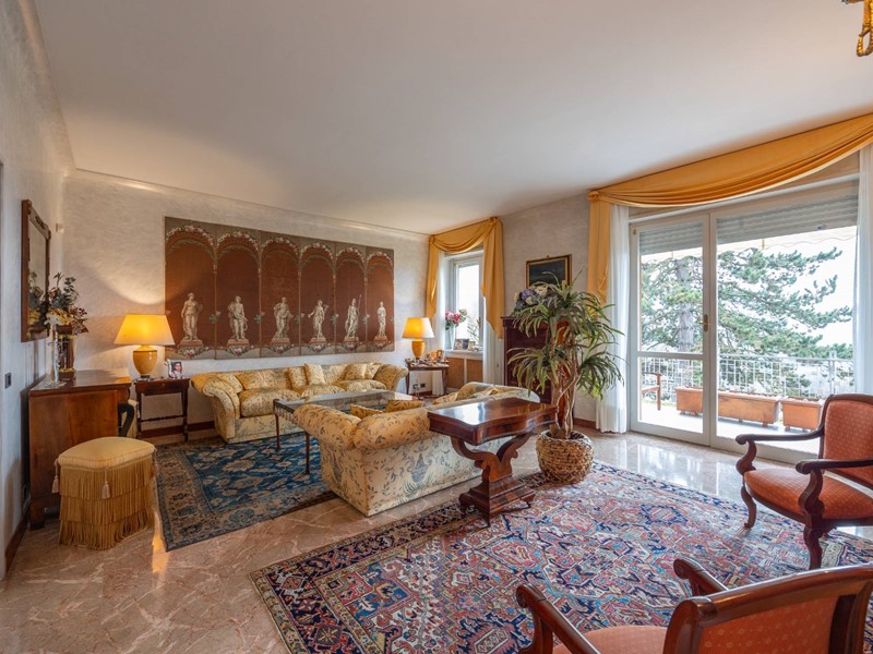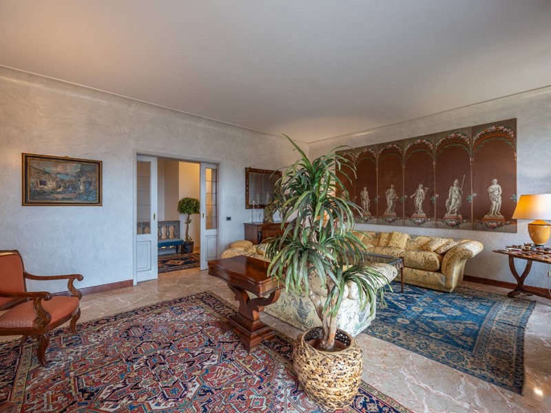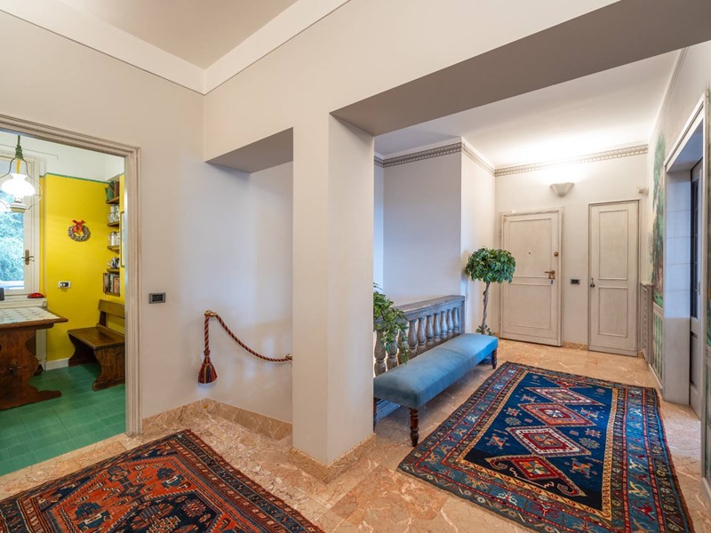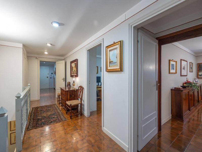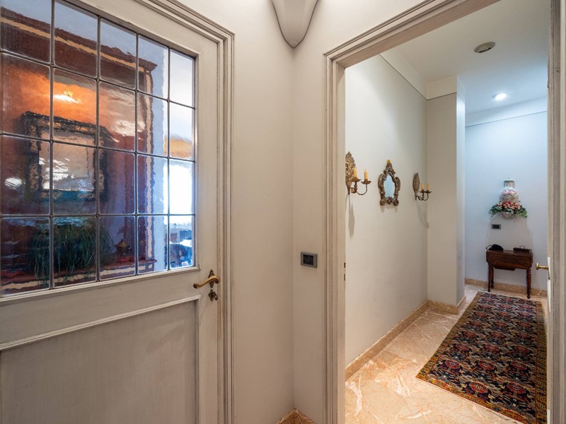 Una importante scalinata marmorea collega il piano inferiore, completamente finestrato sul lato giardino, composto da sala biliardo/tavernetta, vano ripostiglio sottoscala, disimpegno con armadiate su misura, camera ospiti, altra camera ad uso studio con vano celato contenente il pc e stampante, bagno ad uso lavanderia.
