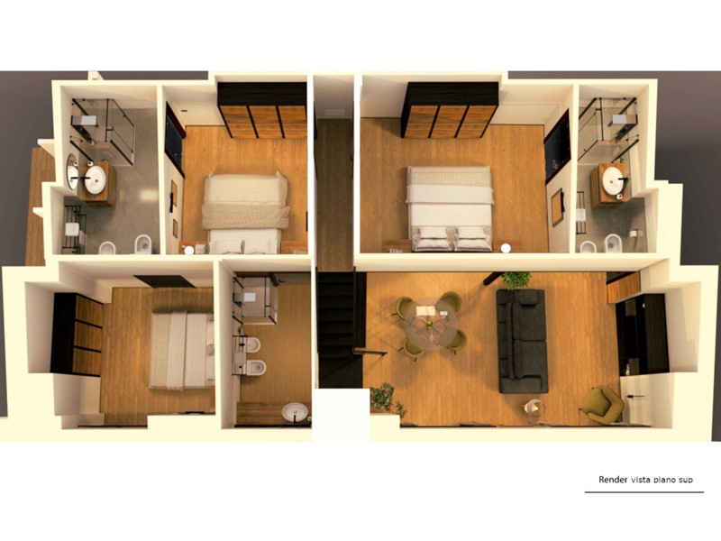 Gli appartamenti si presentano al rustico; Alcune fotografie di appartamenti già consegnati e alcuni render esemplificano come potrebbero essere completati secondo le diverse soluzioni previste da capitolato.