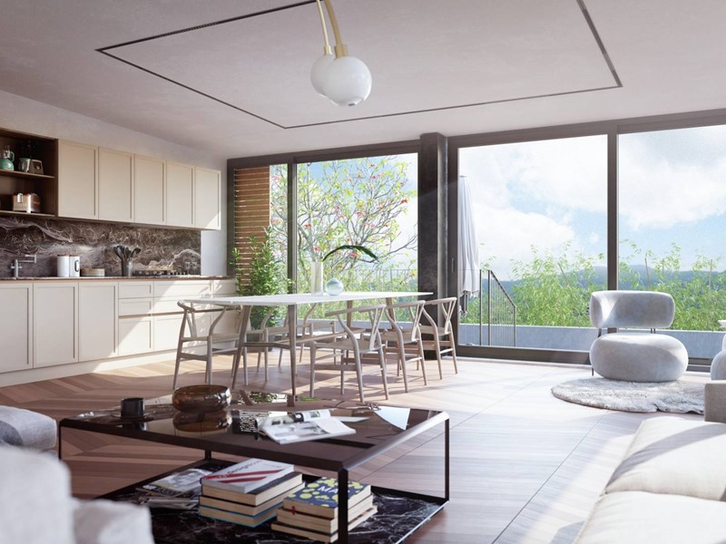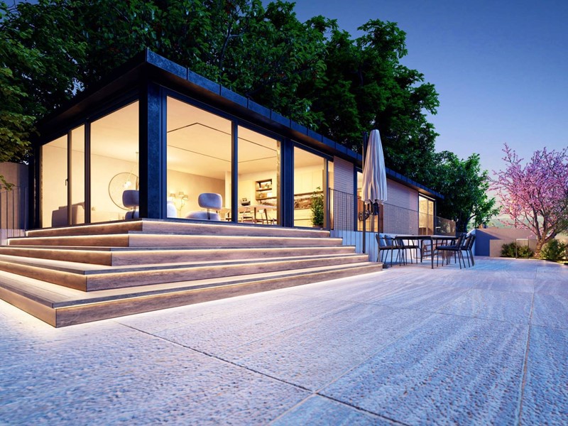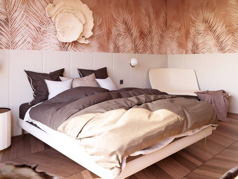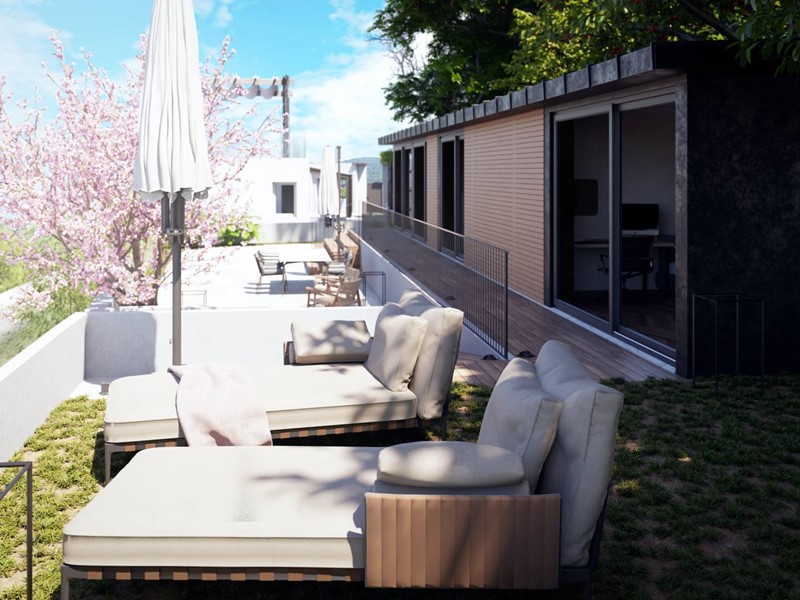 La villa sarà composta da ingresso su ampio soggiorno con cucina a vista, due camere di cui una matrimoniale e due bagni.