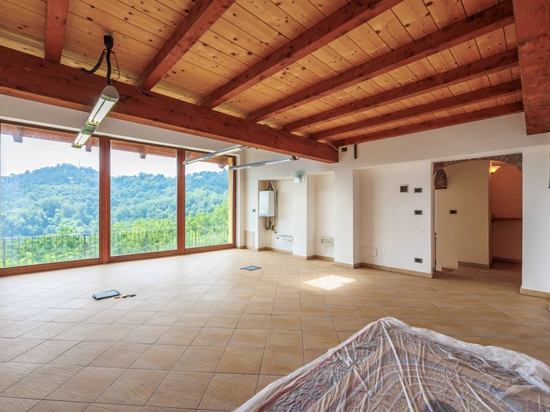 L'immobile si presenta in ottimo stato ed è cosi composto: ingresso, ampio soggiorno con soppalco da cui le ampie vetrate permettono una vista sul verde esterno della collina, cucina, due camere e un bagno.