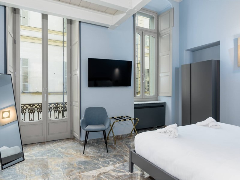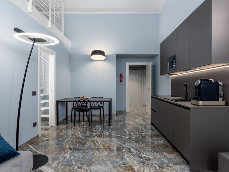 Al piano nobile di un palazzo d'epoca posizionato di fronte al Palazzo Madama, splendido appartamento appena ristrutturato con materiali e accessori di pregio e completamente arredato con mobili di design. Il lotto 2 è composto da disimpegno, soggiorno con cucina a vista, camera, bagno e un ulteriore camera singola su soppalco ed affaccia su Via Accademia delle Scienze. Lo stabile è dotato di portineria e di doppi ascensori. Riscaldamento e condizionamento autonomi. Totale accessibilità ai disabili