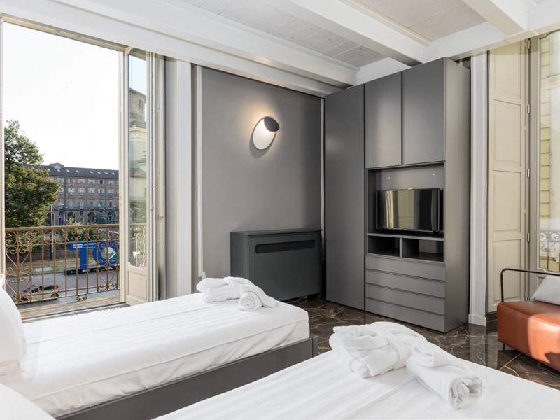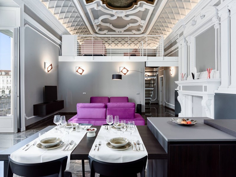 Al piano nobile di un palazzo d'epoca posizionato di fronte al Palazzo Madama, splendido appartamento appena ristrutturato con materiali e accessori di pregio e completamente arredato con mobili di design. Il lotto 3 è composto da ingresso, ampio salone di circa 60 mq con cucina a vista, due camere, due bagni, un ampio soppalco aperto sul salone, ad uso salotto tv, ed ha uno splendido affaccio su Palazzo Madama con un lungo balcone e un altro su Via Accademia delle Scienze con un balconcino. Lo stabile è dotato di portineria e di doppi ascensori. Riscaldamento e condizionamento autonomi. Totale accessibilità ai disabili