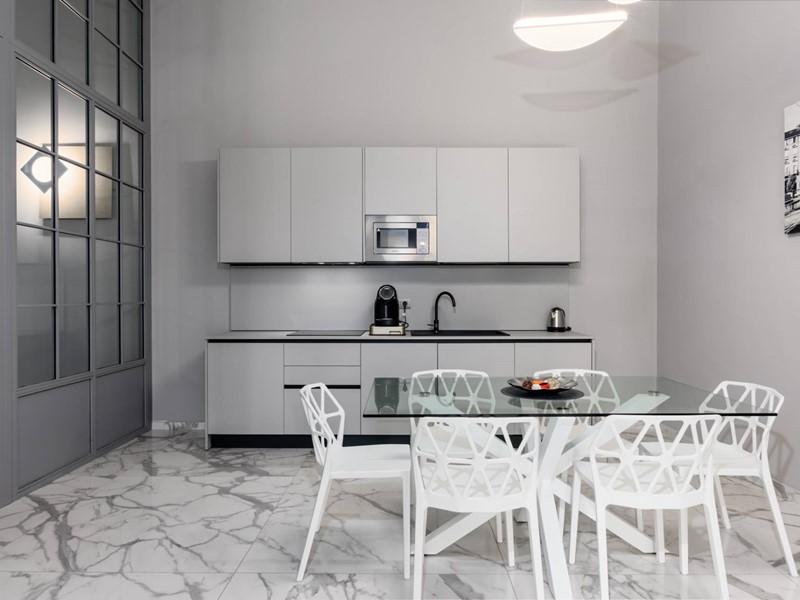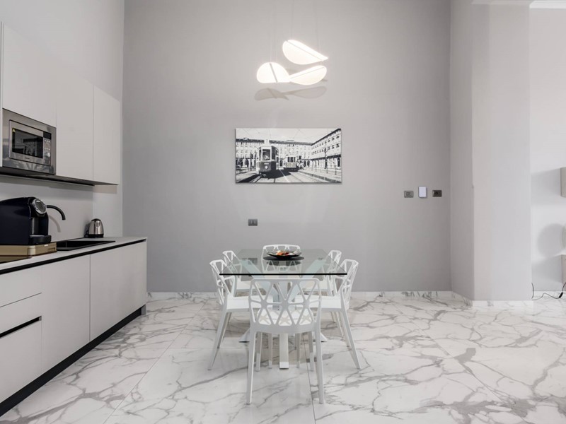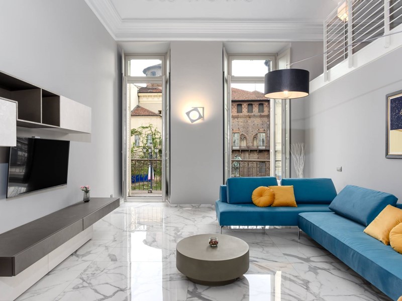 Al piano nobile di un palazzo d'epoca posizionato di fronte al Palazzo Madama, splendido appartamento appena ristrutturato con materiali e accessori di pregio e completamente arredato con mobili di design. Il lotto 6 è composto da ampio ingresso, cucina, ampio soggiorno, camera, bagno con antibagno, un soppalco aperto sul salone, ad uso cameretta con un letto singolo, ed ha uno splendido affaccio su Palazzo Madama con un lungo balcone. Lo stabile è dotato di portineria e di doppi ascensori. Riscaldamento e condizionamento autonomi. Totale accessibilità ai disabili