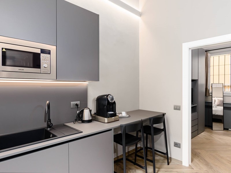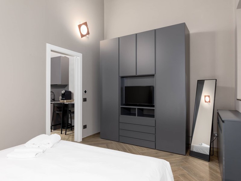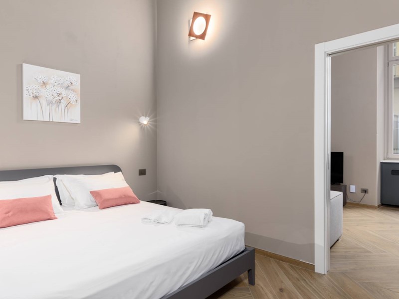 Al piano nobile di un palazzo d'epoca posizionato di fronte al Palazzo Madama, splendido appartamento appena ristrutturato con materiali e accessori di pregio e completamente arredato con mobili di design. Il lotto 7 è composto da ingresso, soggiorno con cucina a vista, camera, bagno con antibagno, ed ha due arie con affacci sui cortili interni. Lo stabile è dotato di portineria e di doppi ascensori. Riscaldamento e condizionamento autonomi. Totale accessibilità ai disabili