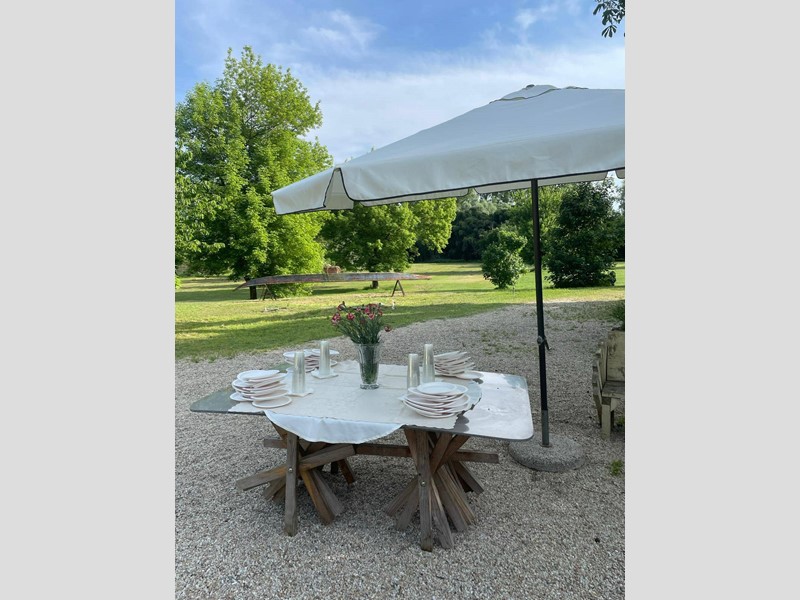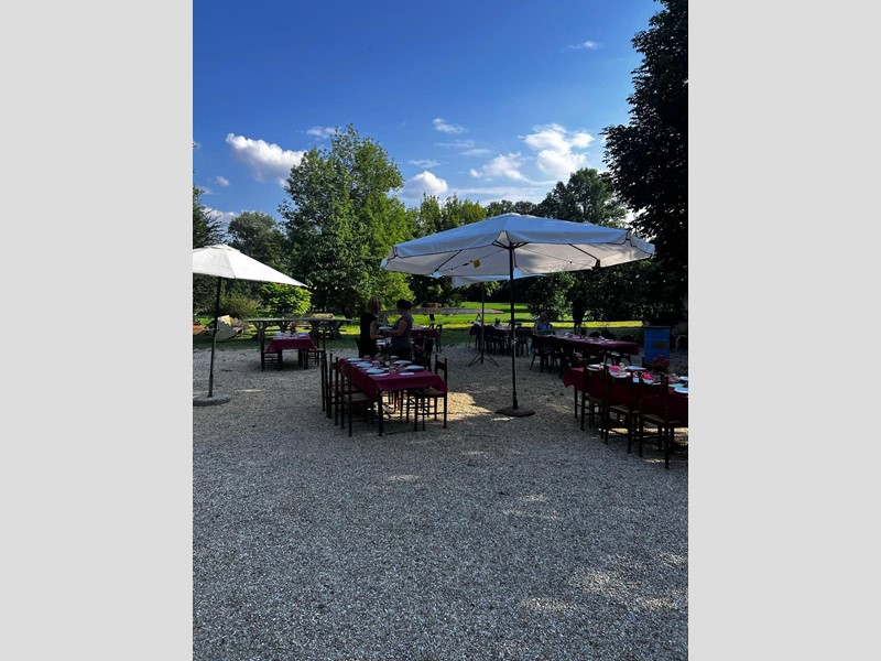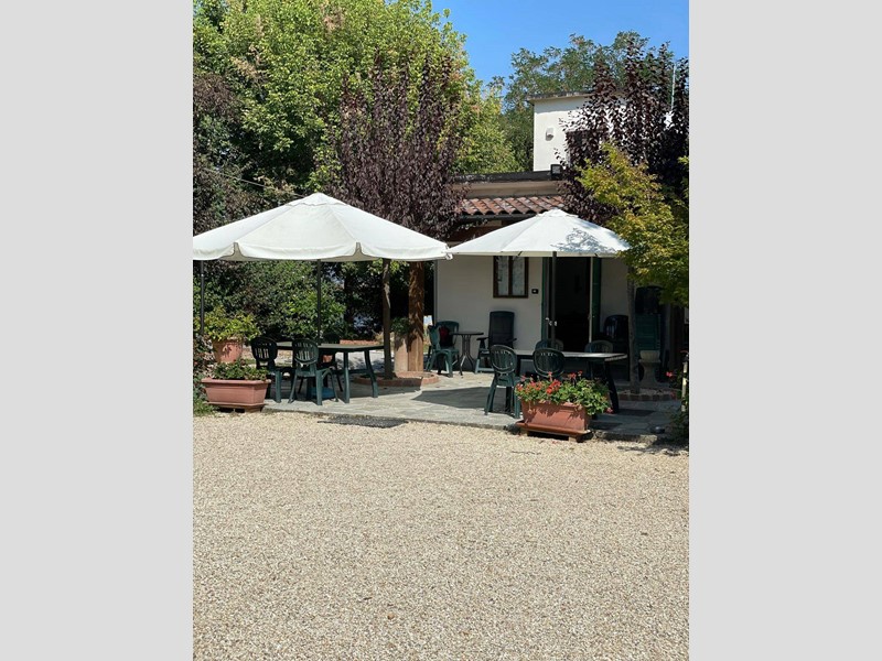 Ampia area esterna che ospita fino a 150 coperti e zona barbeque coperta. L'arredamento è elegante e raffinato, con una combinazione di colori caldi e accoglienti, che creano un'atmosfera confortevole e familiare.