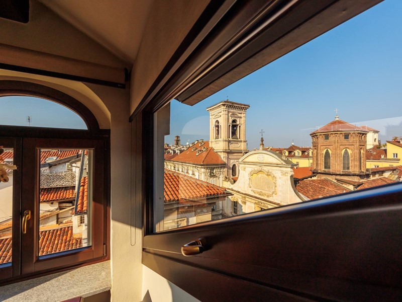 Nel cuore del centro storico, nell' isola denominata Sant' Alessio, isolato che comprende Via San Dalmazzo, Via Garibaldi, Via Stampatori e via Barbaroux, proponiamo in vendita particolare appartamento unico nel suo genero. L' immobile si trova in Via Garibaldi al IV° e V° piano in palazzo del 700 con servizio di ascensore. Al V° piano con ingresso privato, delle scale con soffitti a croce ci conducono nella zona più affascinante dell' appartamento, dove troviamo una zona notte, un bagno, un ampia zona relax dove è possibile ricavare un' ulteriore camera e un secondo bagno; caratterizzata da una splendida vista su Torino con ampi abbaini e un terrazzino con affaccio sui tetti torinesi.A pavimento troviamo parquette e vetro che rendono luminoso il tutto. Una scala di design ci porta al IV° piano dove è presente un secondo ingresso su zona giorno con cucina a vista e camino funzionante, una camera, un bagno finestrato, un ampia zona armadi, con possibilità di ricavarne uno studio, e una zona lavanderia completano la proprietà. L' appartamento si presenta completamente ristrutturato con materiali di pregio, riscaldamento autonomo, aria condizionata.