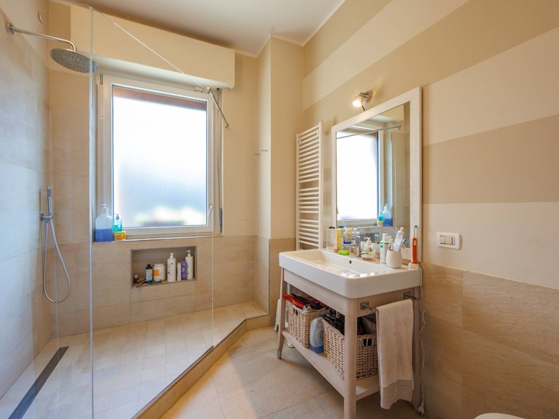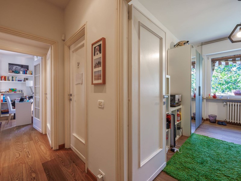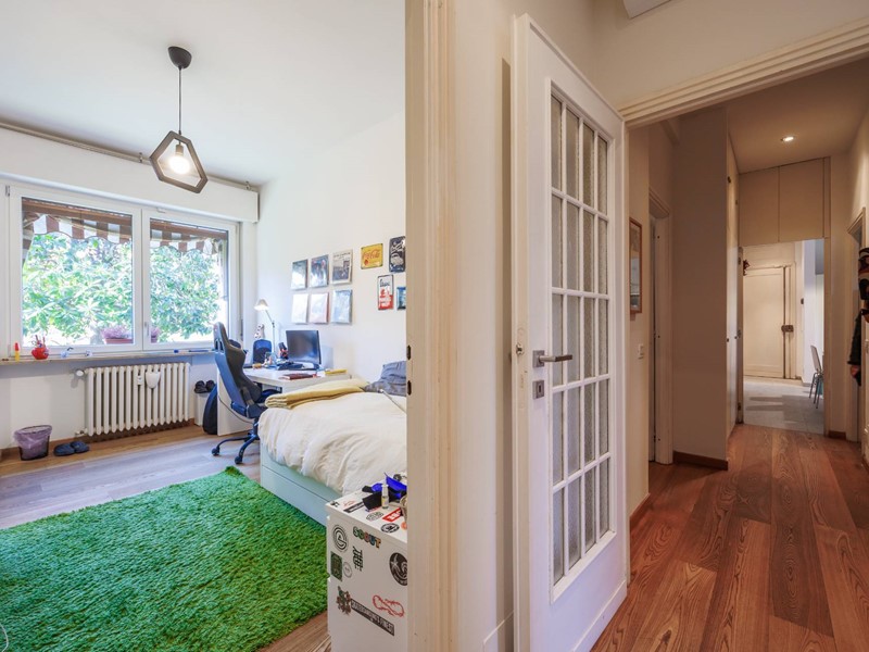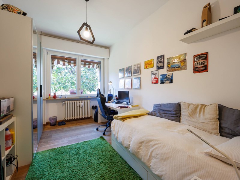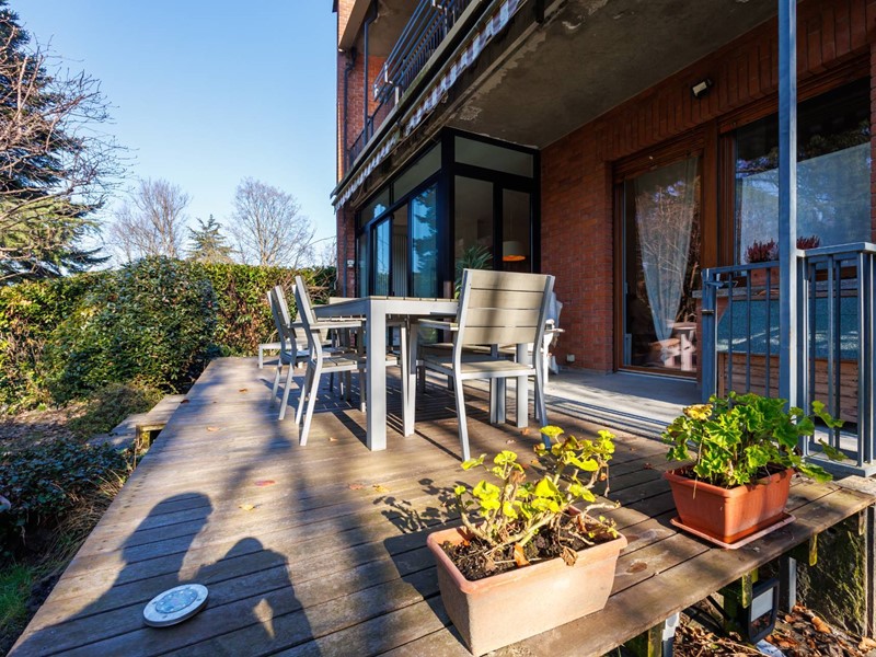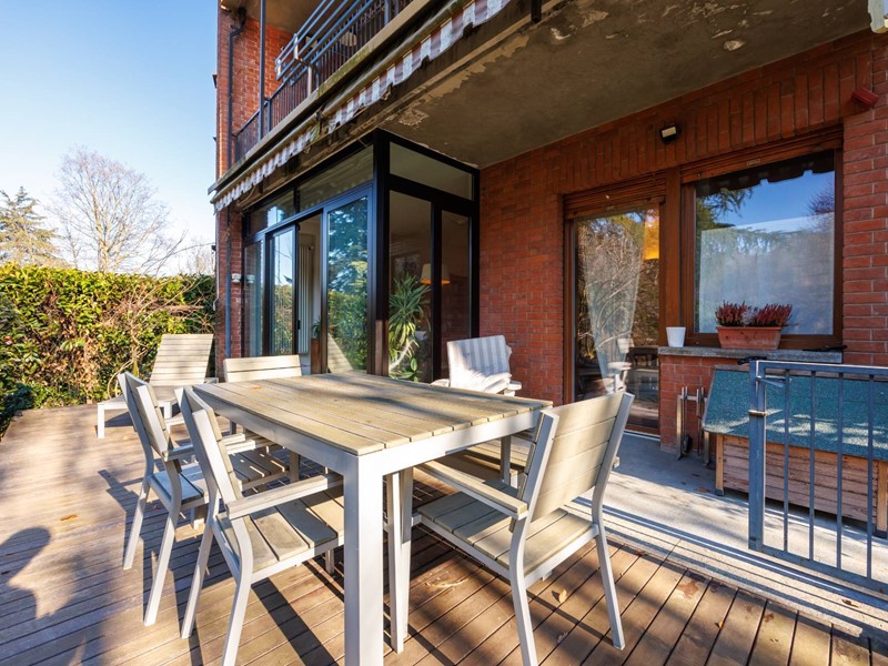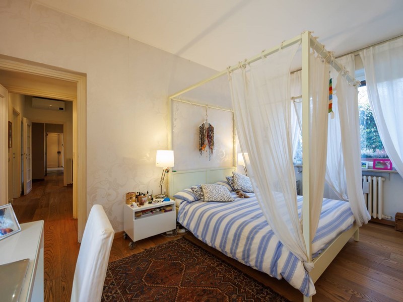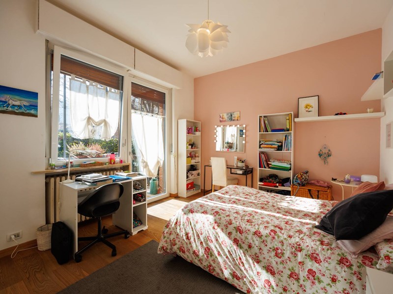 L'immobile è così composto: doppio ingresso, di cui uno su cucina abitabile con balcone, ampio soggiorno con accesso al terrazzo e giardino, disimpegno con accesso alla zona notte composta da quattro camere da letto molto luminose, camera da letto padronale con "en suite" e balcone e tre camere da letto di cui una con balcone accesso al giardino, due bagni funzionali, di cui uno di servizio.