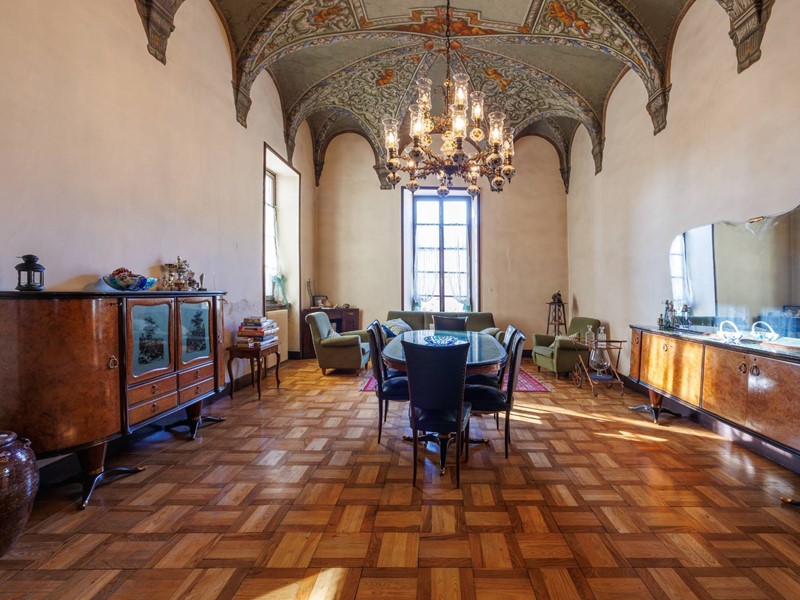 La struttura offre numerose stanze, tra cui: camere da letto con affacci sul parco, biblioteca e studio, cucina e sale da pranzo e cantine storiche con volte in mattoni.