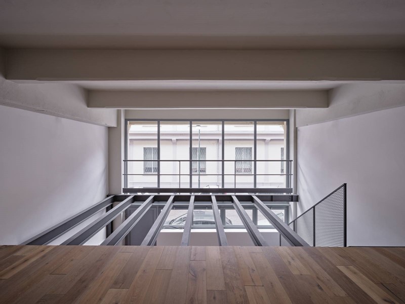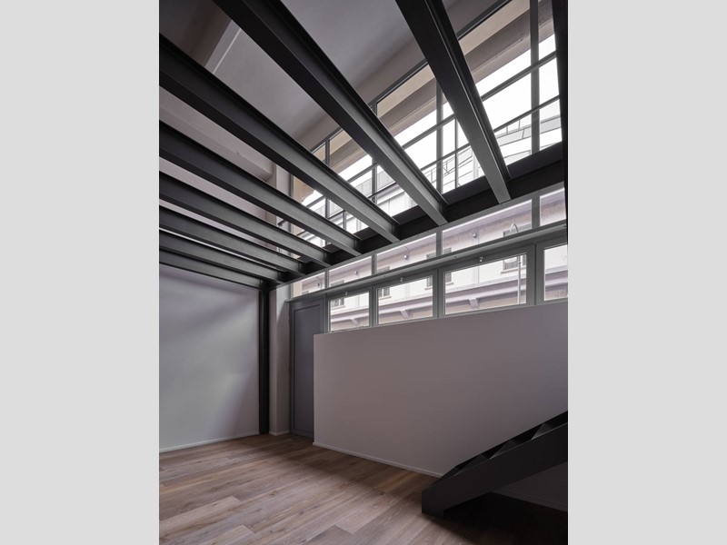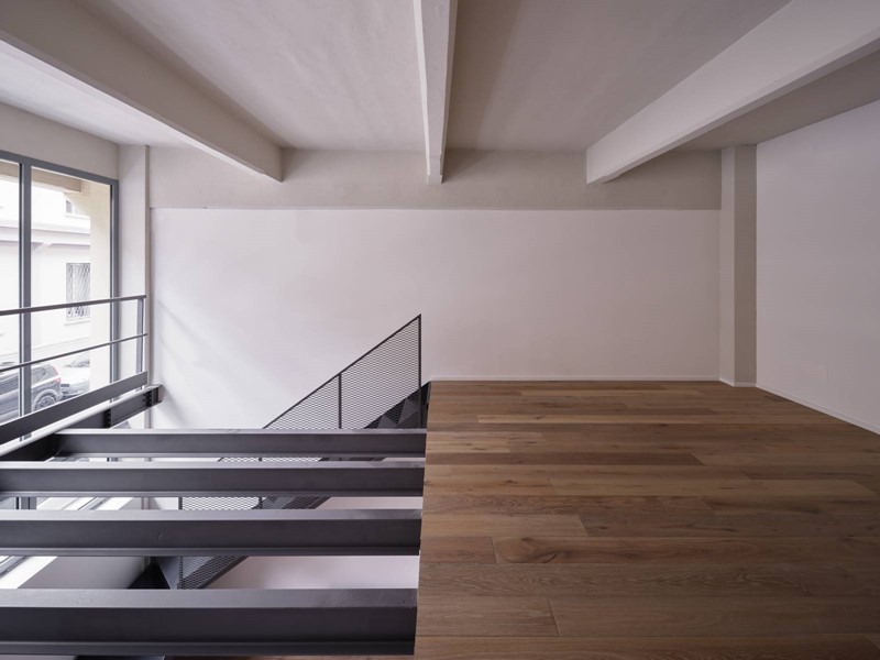 Dal piano terra si accede al piano soppalcato, mediante scala interna in acciaio e legno, dove troviamo unampia zona notte.