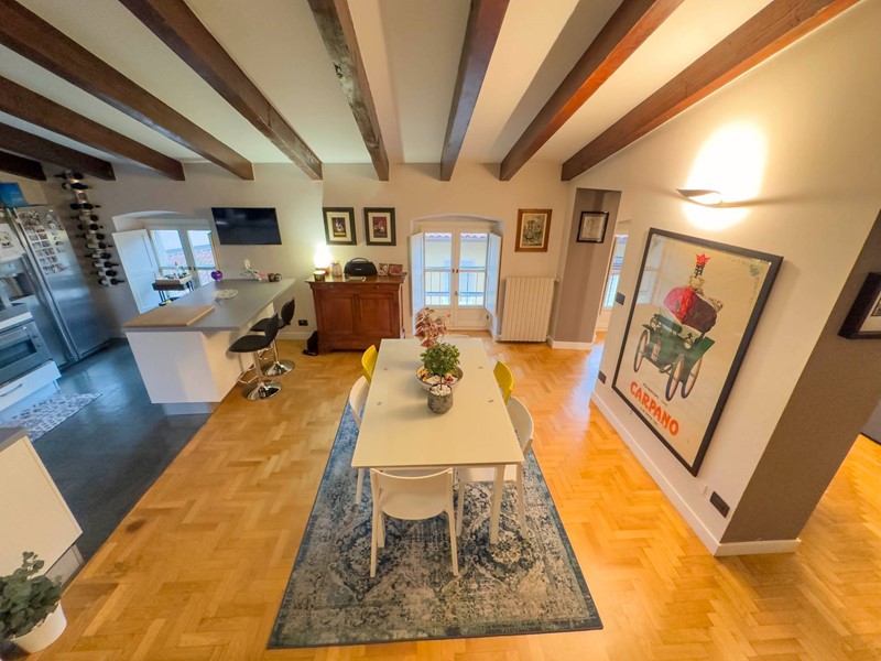 Via Carlo Alberto, nel cuore del centro storico di Moncalieri, al terzo piano senza ascensore, appartamento completamente ristrutturato composto da ingresso living su soggiorno, cucina, due camere, di cui quella padronale con bagno en suite, ulteriore bagno e comoda lavanderia. Completa la proprietà un'ampia cantina di pertinenza.