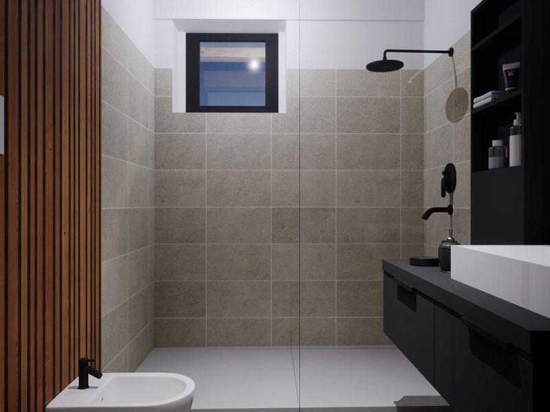 L'appartamento in oggetto (planimetria A4), sito al piano terra, è di circa 130 mq ed è composto: ingresso su ampio disimpegno, ampio soggiorno living con cucina a vista, tre camere da letto, due bagni con antibagno, terrazzo di circa 32 mq.