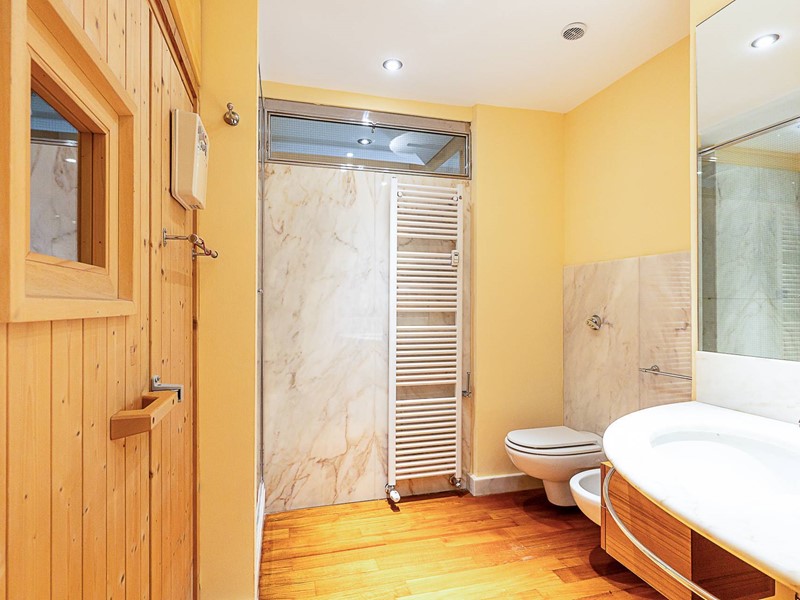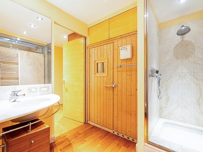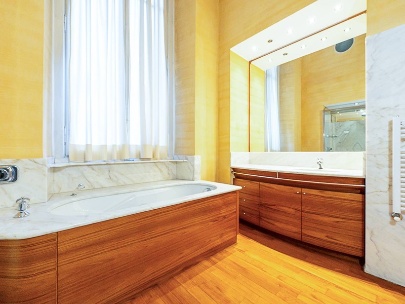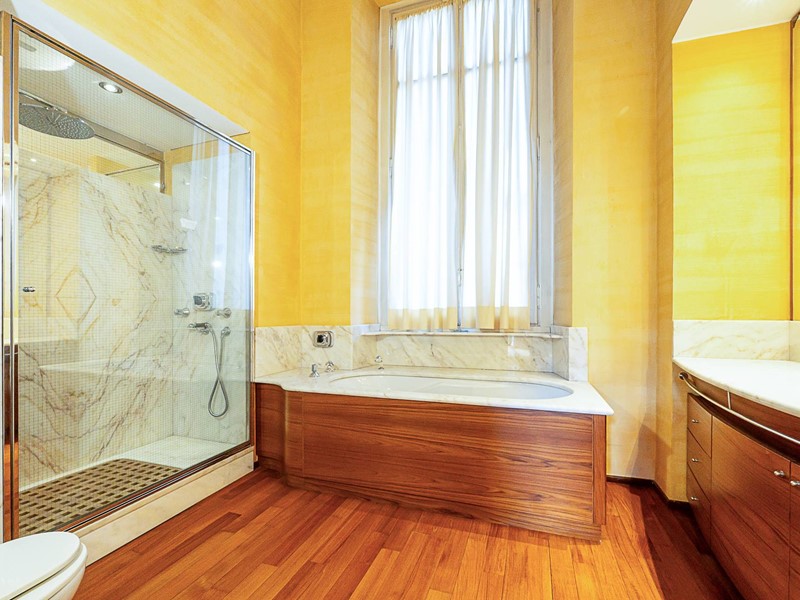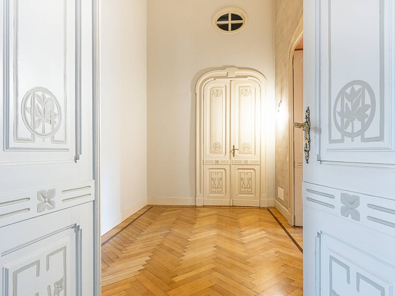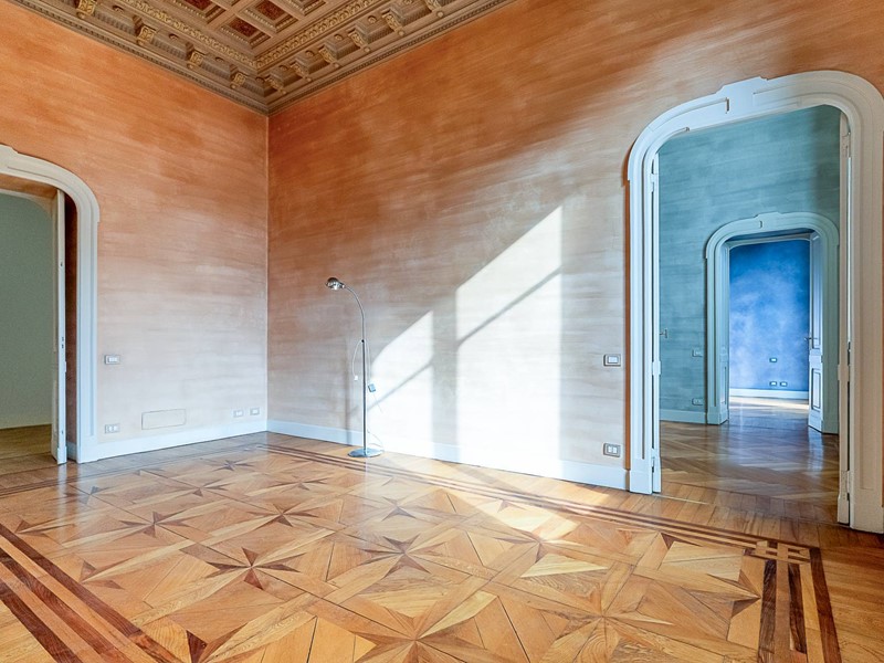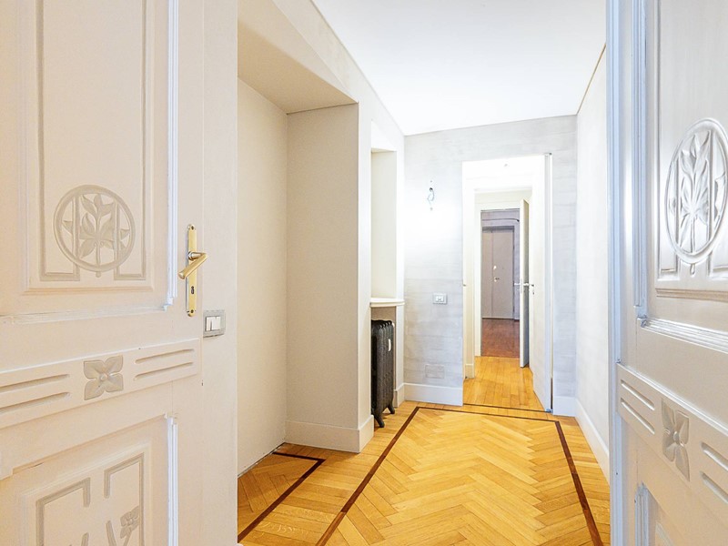 Riscaldamento centralizzato con termovalvole collegato al teleriscaldamento, impianto di condizionamento, impianto di antifurto, serramenti in legno con doppio vetro, tapparelle elettriche, pavimenti in splendido parquet, marmi e seminato con decori originali, porta blindata, armadiate su misura, l'appartamento gode di tripla esposizione, soffitti decorati con altezza di 4.60 m