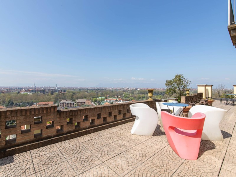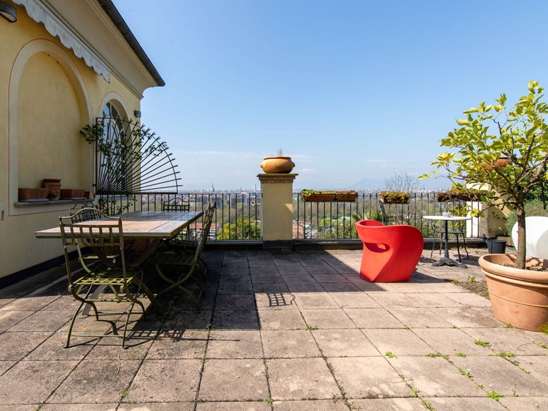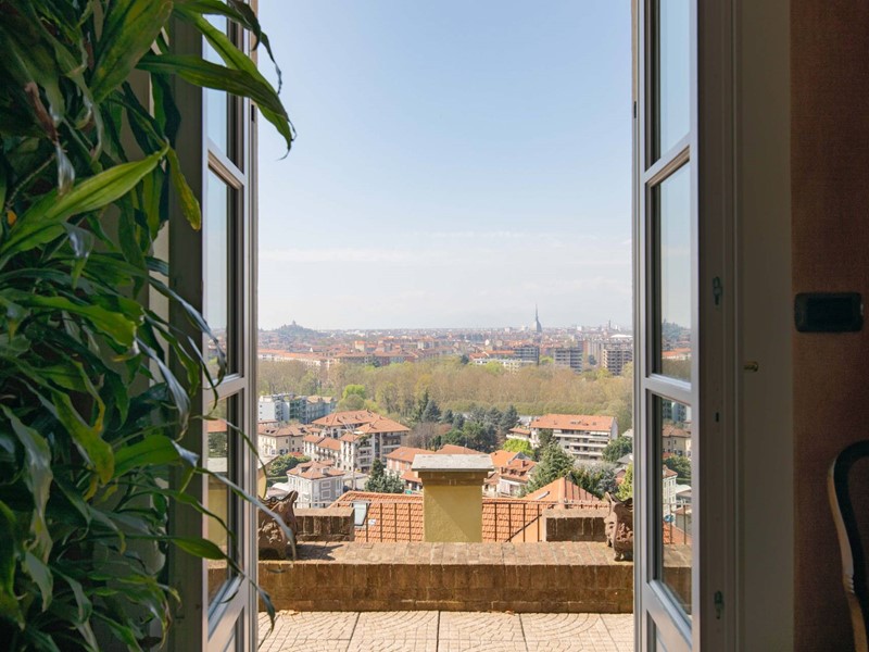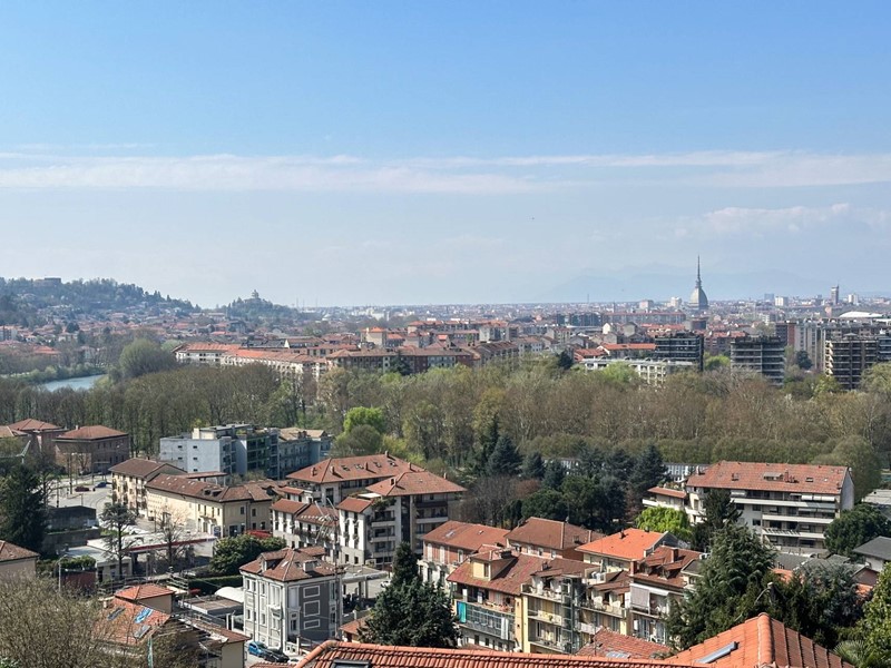 Appartamento di 290 mq con vista panoramica su Torino con giardino e terrazzi privati collocato al secondo piano su tre di una piccola palazzina signorile di sole tre unità abitative.