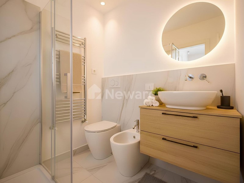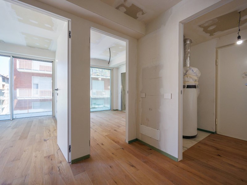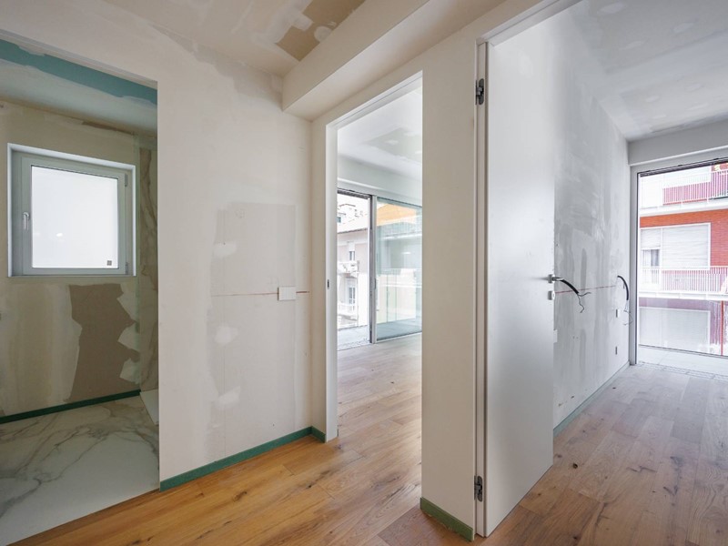 Principali caratteristiche: pavimenti in parquet di rovere nella zona giorno e nelle camere da letto; rivestimenti bagno in gres, piatto doccia con parete in vetro temperato anticalcare; porte filo muro con maniglie in acciaio; infissi esterni a taglio termico scorrevoli; parapetti di balconi e terrazzi in vetro temperato; impianto domotico; predisposizione antifurto e videocitofono. La cantina al piano interrato completa lofferta.