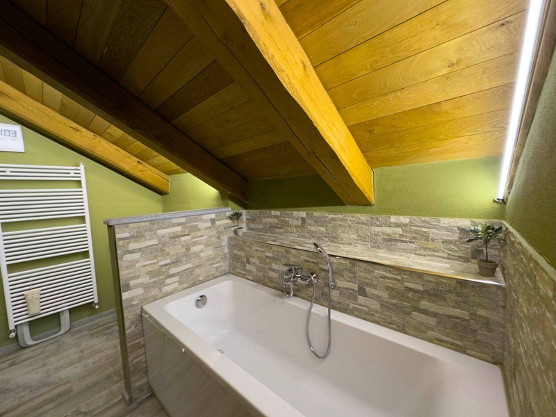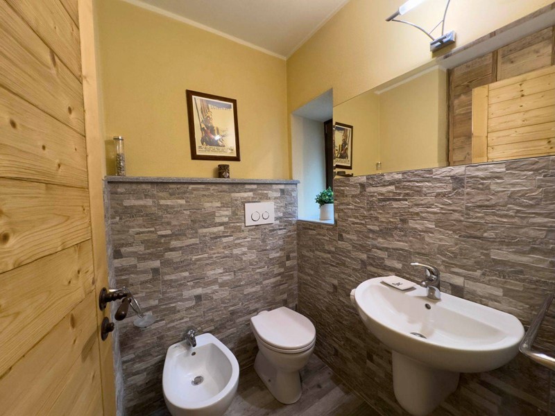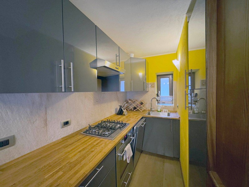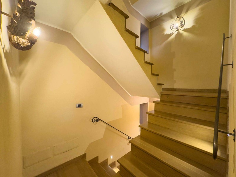 - piano secondo: zona giorno con cucina su misura, camino bifacciale, soggiorno con vista panoramica e bagno ospiti