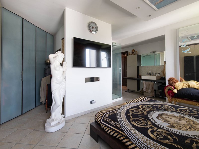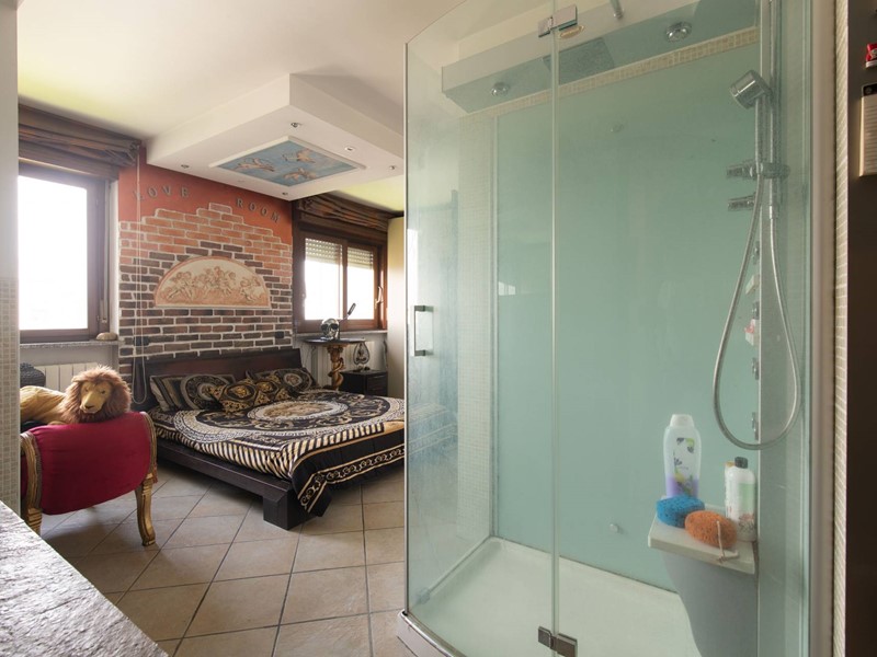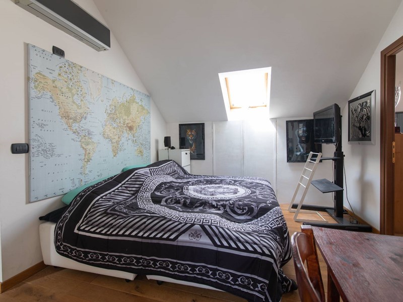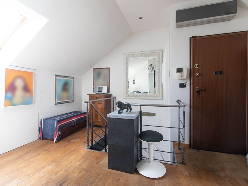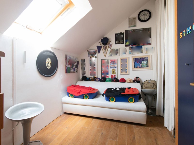 Il piano principale (ottavo piano) si apre su un ampia zona giorno open space con cucina a vista, balcone con vista diretta sullAllianz Stadium perfetto per vivere da vicino latmosfera delle grandi partite, camera matrimoniale e un moderno bagno finestrato.