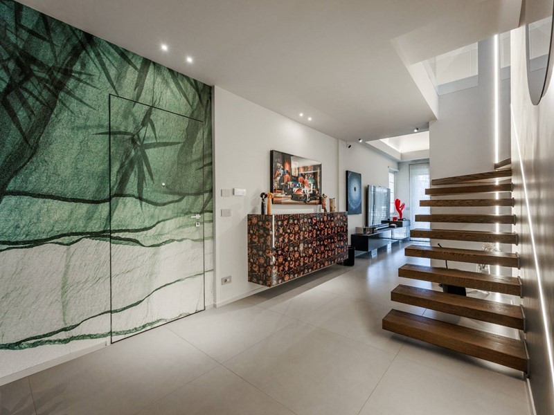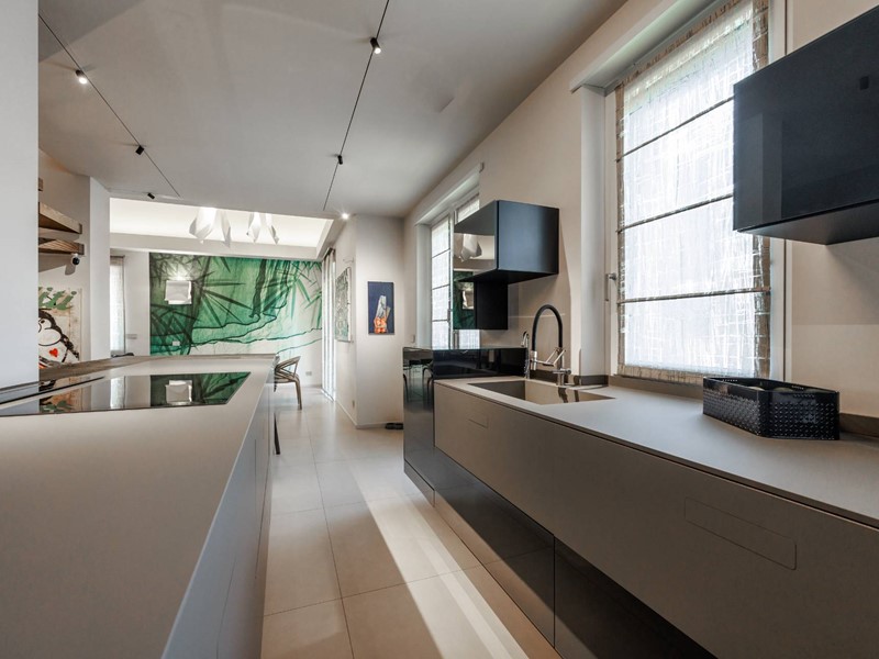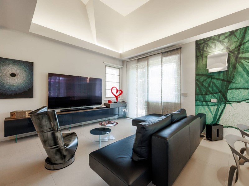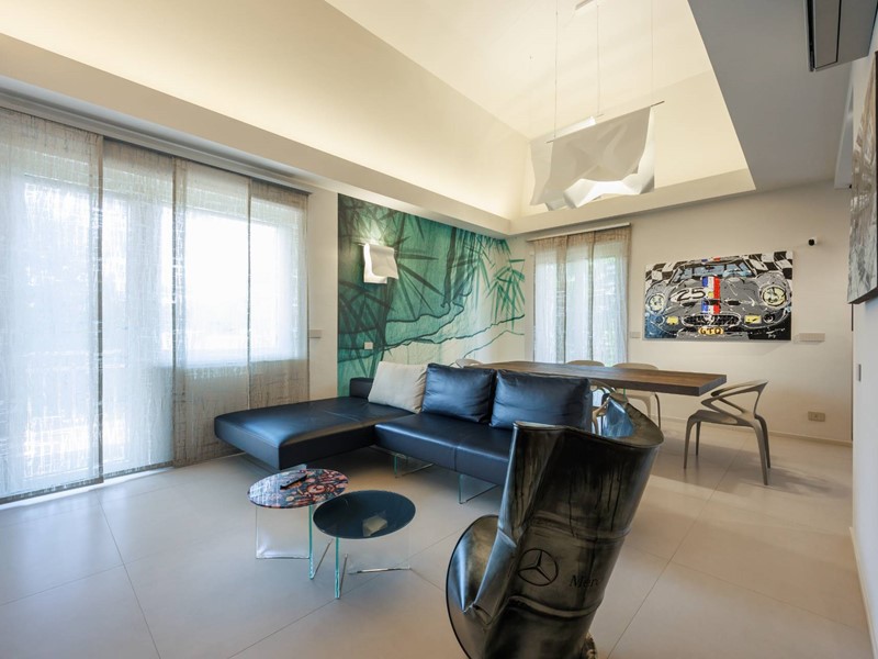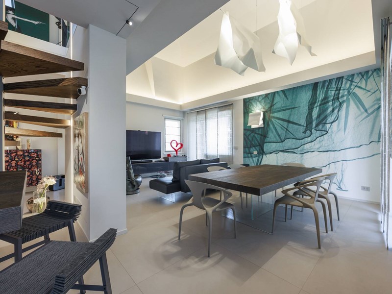 All'interno dell'esclusivo "Villaggio delle rose", in palazzina degli anni 70' di tre piani, appartamento bilivello completamente ristrutturato e arredato con materiali di alto pregio.